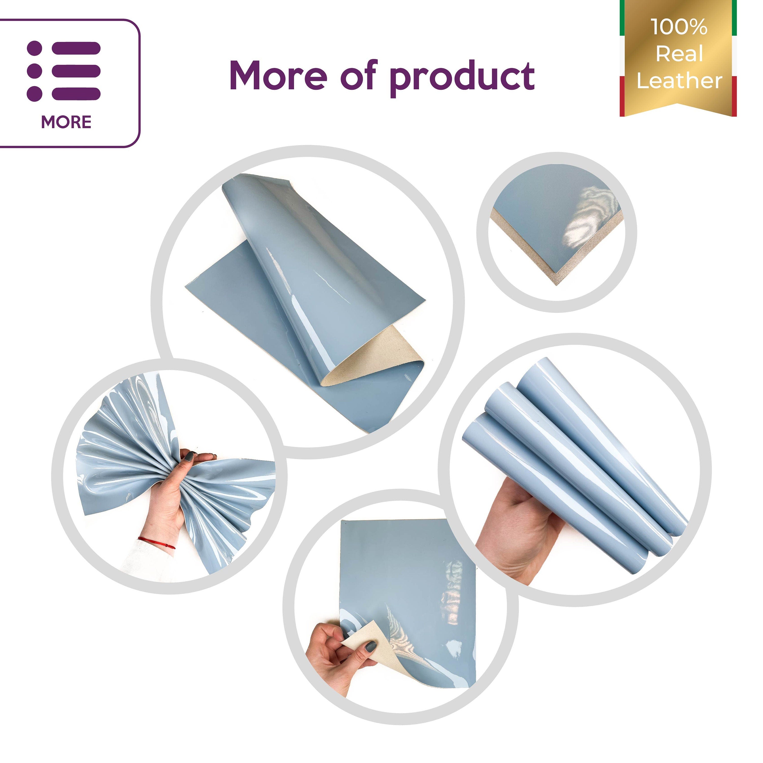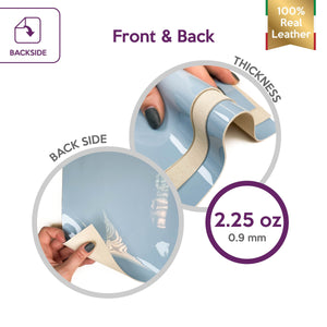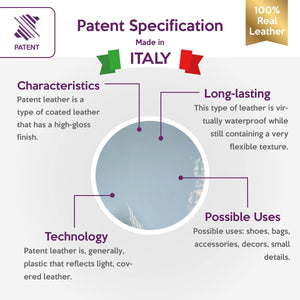 High-quality lambskin PATENT leather. Light blue color (size) leather pieces for your best projects! Our mission is to provide only the best quality Italian leather to other leather workers, crafters of...