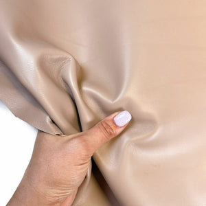 Beige Pink color, thick and good for projects that need to be pleasant for touch but hold shape - leather jacket, shorts, shoes, also nice for earrings and jewelry.