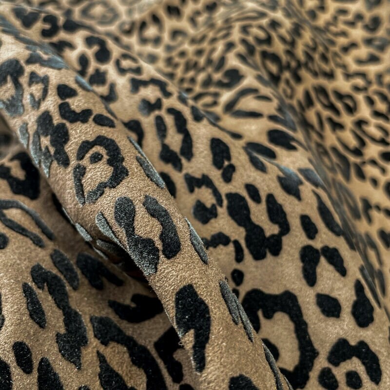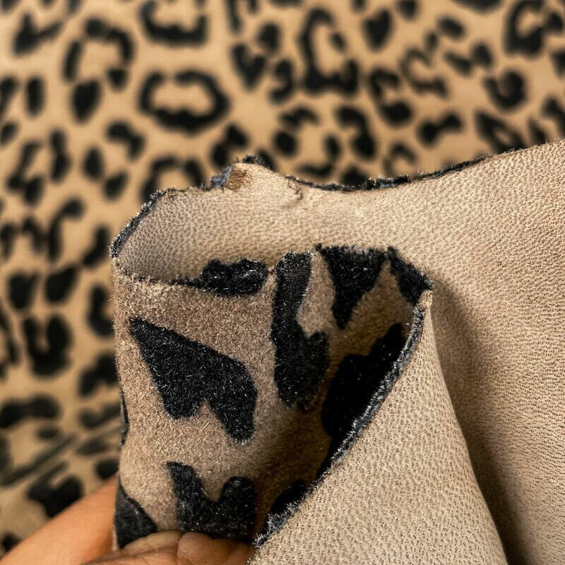 High-quality suede lambskin leather with soft leopard print all over. Unique suede leather for your best projects! Our mission is to provide only the best quality Italian leather to other leather workers, crafters of all kinds, small businesses, or Etsy shop for your own projects.