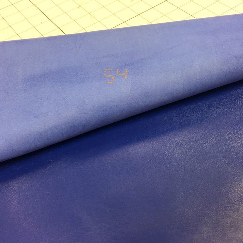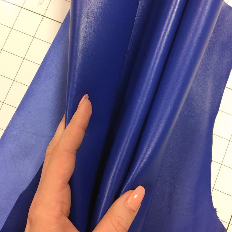 -Bright BLUE leather sheets for sewing and handcrafting. Fantastic bright blue color with a slight shade of purple. Smooth and shiny finishing, high in quality. Italian leather Try it!