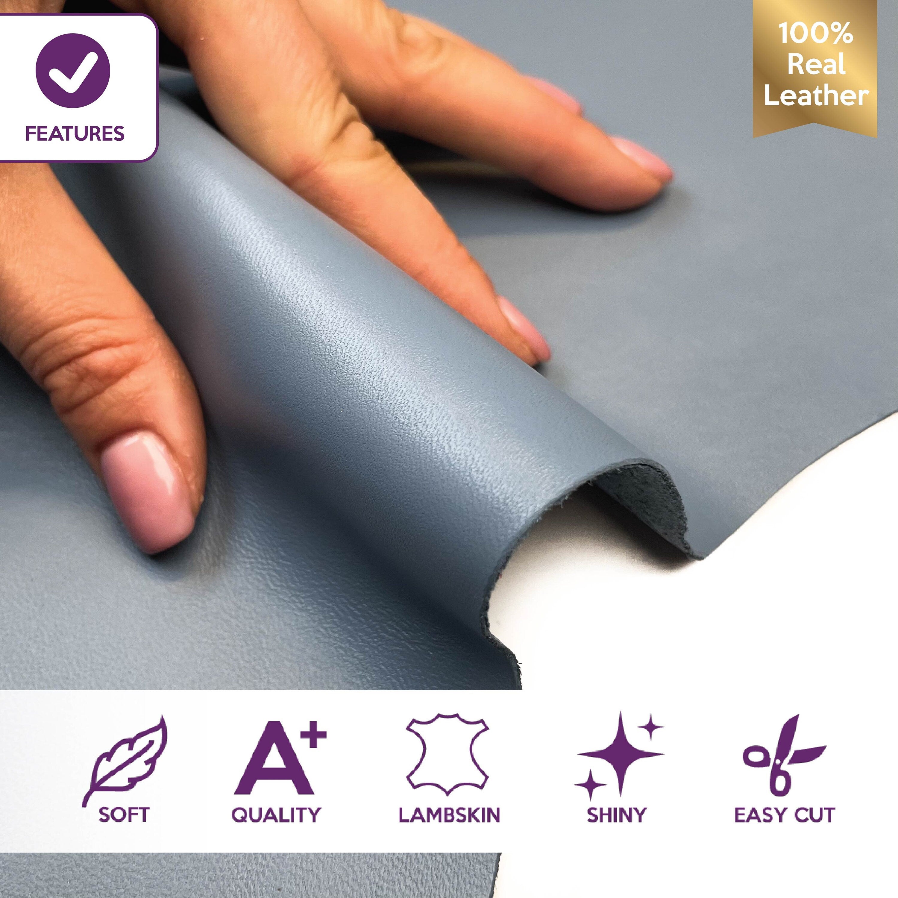 - Gorgeous bluish gray lambskin leather. Soft leather hides for handcrafting. Medium thickness, perfect for sewing leather jackets. The backside is the same as the front.