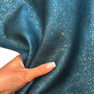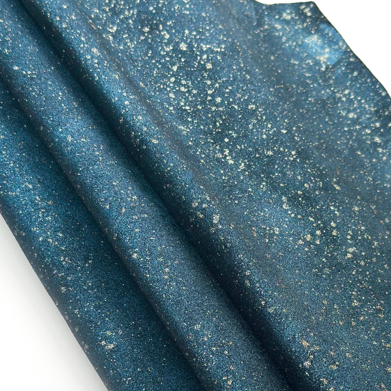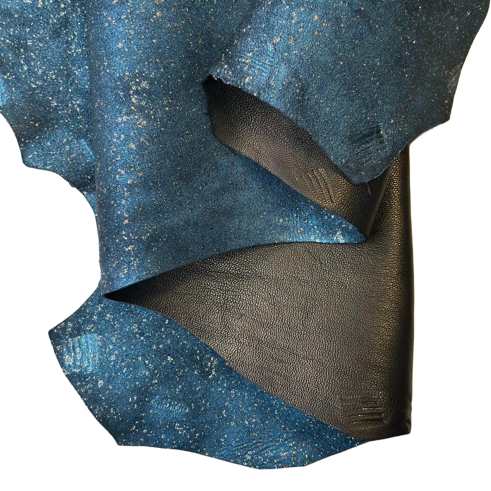 Bring bold luxury to your projects with this stunning blue metallic lambskin suede leather. The rich blue tone is enhanced with a shimmering silver overlay that gives the surface a glamorous, reflective shine, while still keeping the buttery-soft texture of lamb suede. This is 100% real Italian lambskin, lightweight and flexible - ideal for high-end accessories and crafts. ♥️