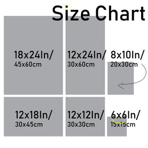 12x12in/30x30cm, 6x6in/15x15cm, 8x10in/20x25cm, 12x18in/30x45cm, 18x24in/45x60cm |