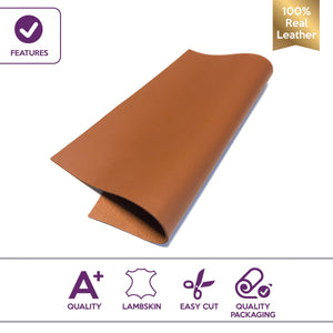 Genuine brown leather pieces. Soft, quality Italian lambskin leather in rusty brown, classic color.