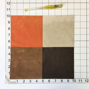 -Selection of 4 leather pieces 1 nappa , 1 leather print and 2 suede leather pieces, size - 5x5 inches.