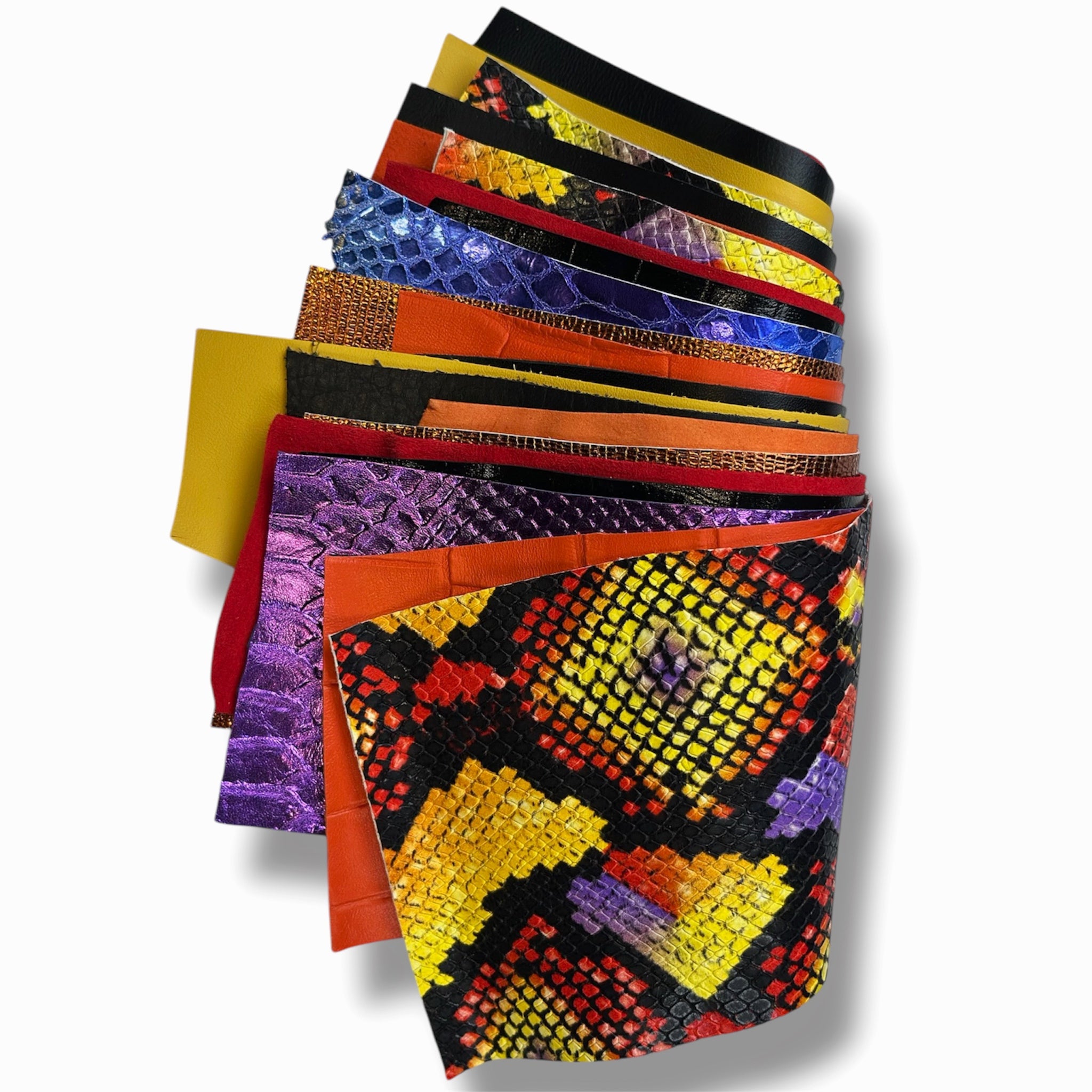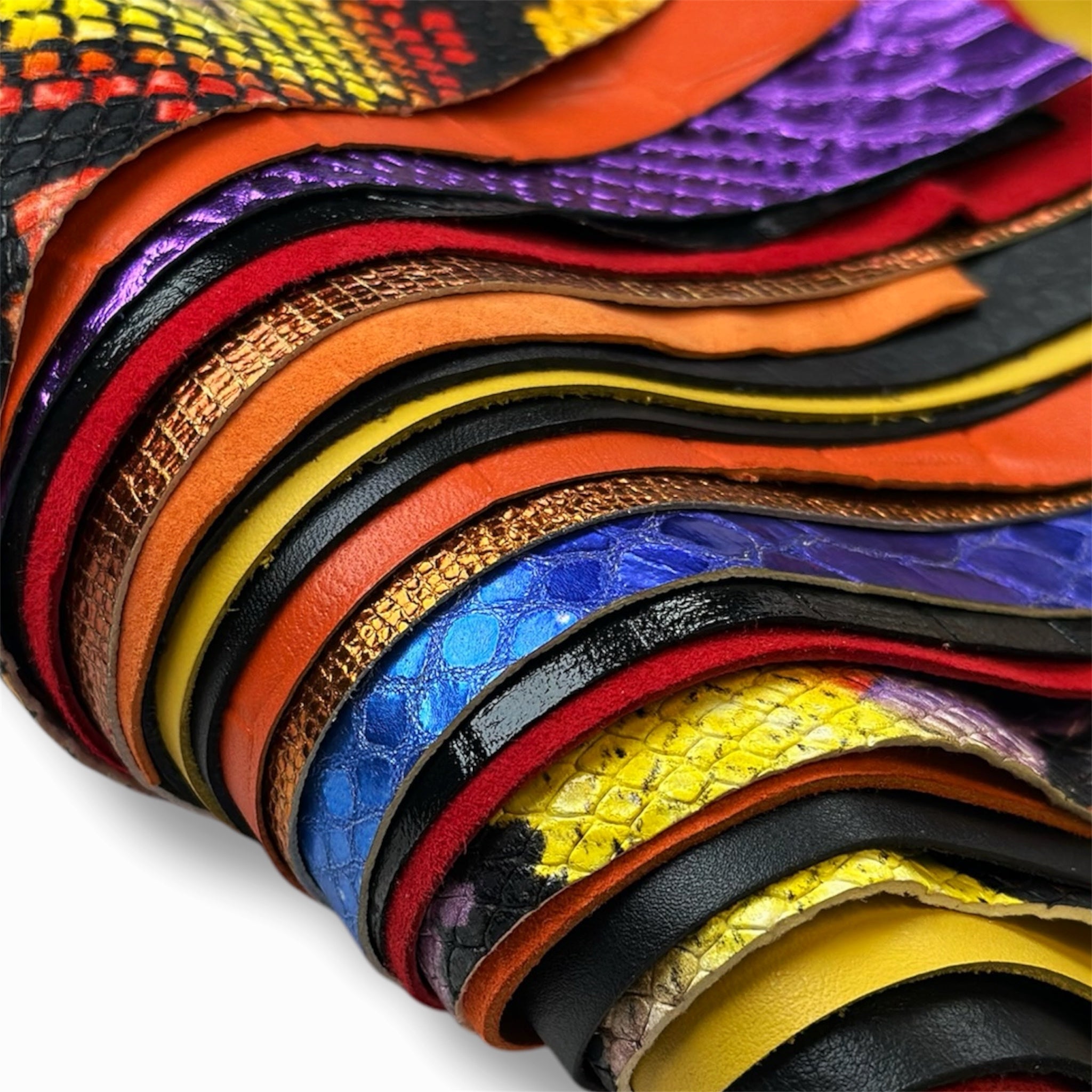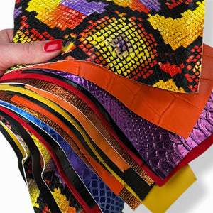 Crazy Snake Print Mix Limited Leather Remnant Packs 0.8-1.3mm/2-3.25oz