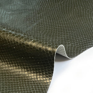 Dark Green Lambskin Leather With Print 0.7-0.8mm GREEN LIZARD 1603