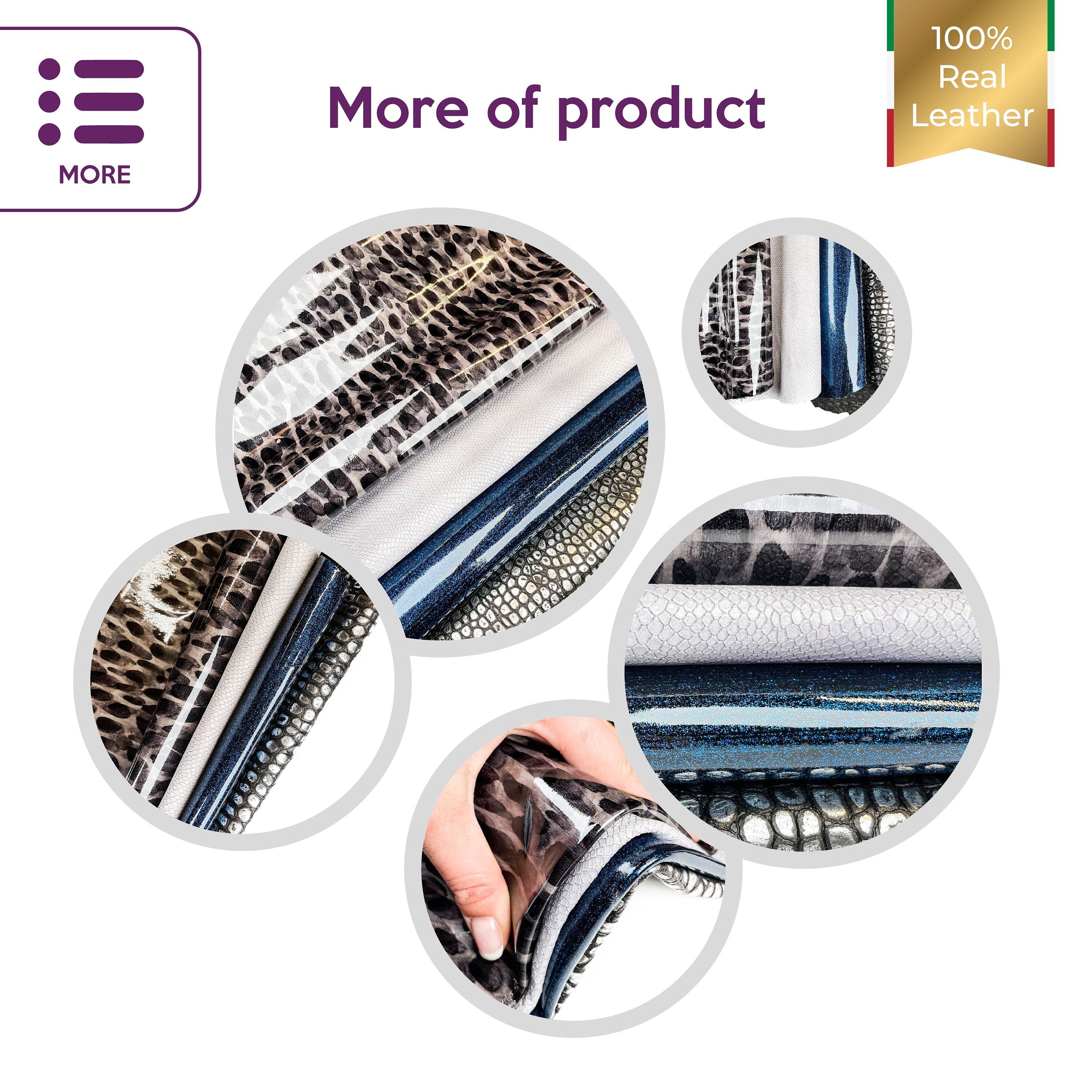 Four different leather pieces as pictures. Each hide's size is different. Amazing and gorgeous material for your best projects! Our mission is to provide only the best quality Italian leather samples to other leather workers, crafters of all kinds, small businesses, or Etsy shops for your own projects.