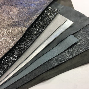 Gray Lambskin Scrap Mix Small Remnants Silver Leather Pieces