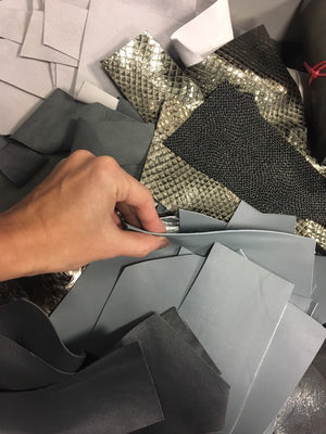 *Our Scrap packs are perfect for designers looking for leather for jewelry, small leather goods, and pieces on handbags. Perfect pieces for leather earrings, leather beads and scrapbooking. Great project leather. Feel free to contact for more information.