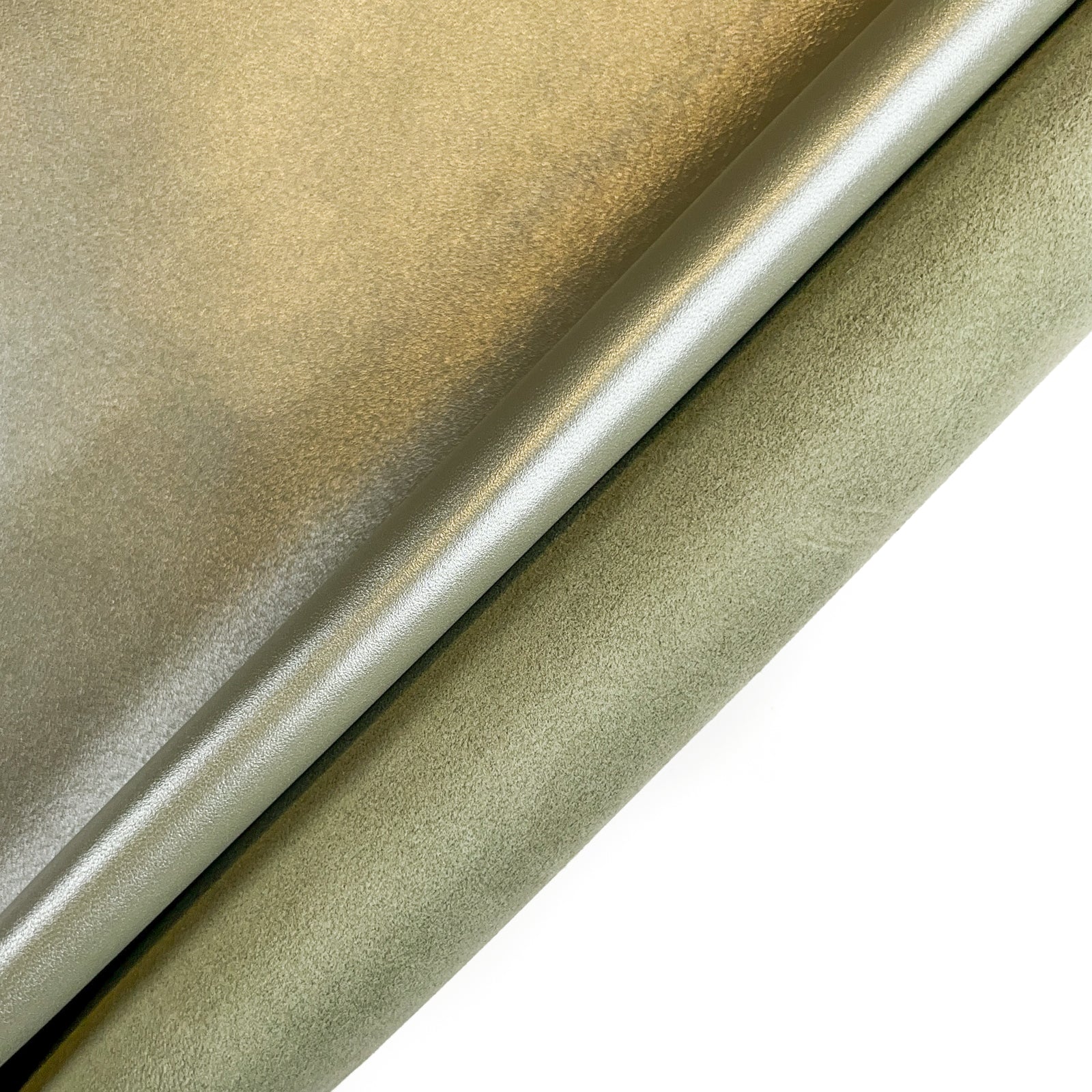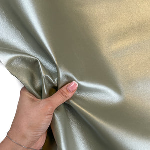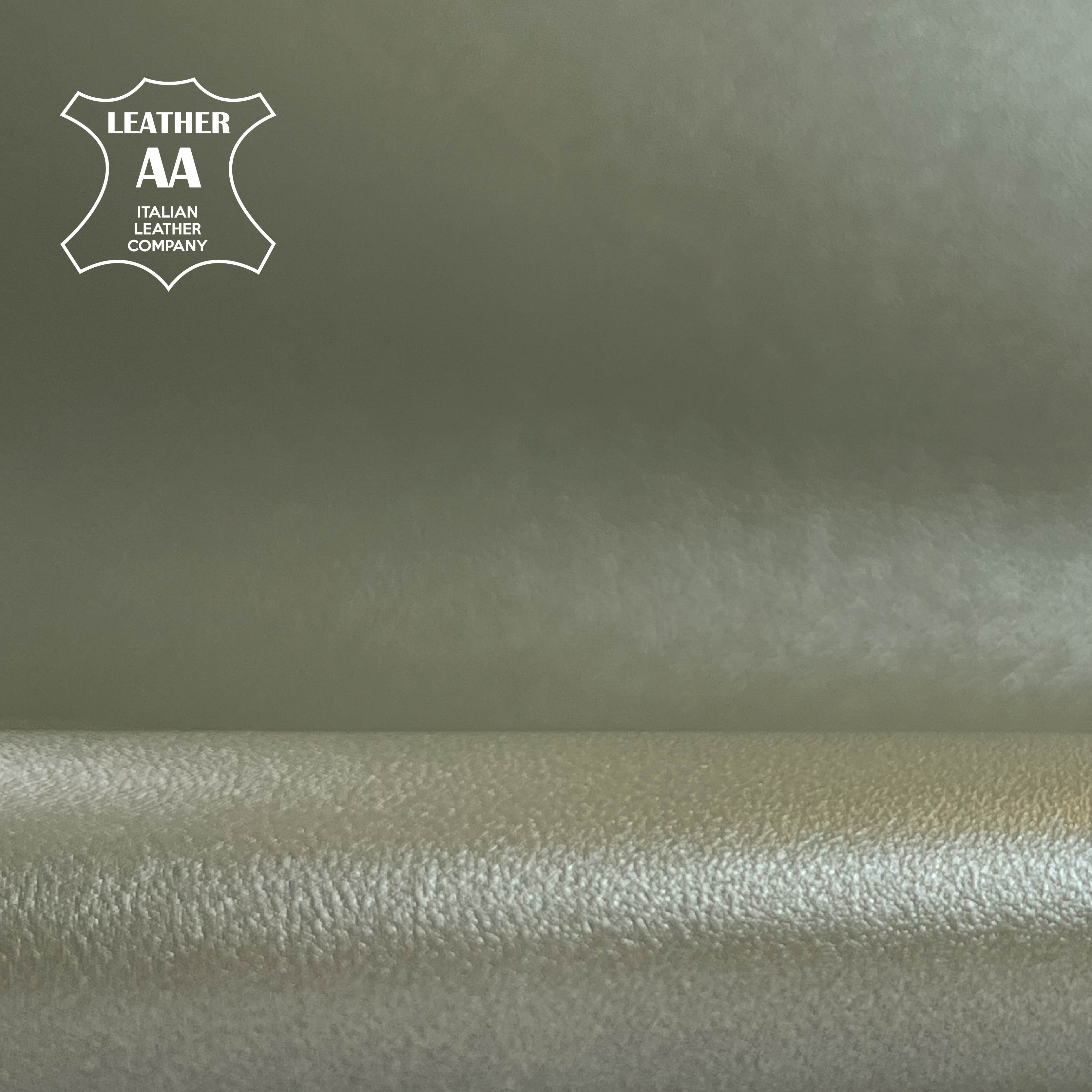 Khaki green lambskin leather with unique perlamuter shine! Amazing leather for bag and purse crafters will be long-lasting. Our mission is to provide only the highest quality Italian leather to other leather workers, crafters of all kinds, small businesses, or shops for your projects.