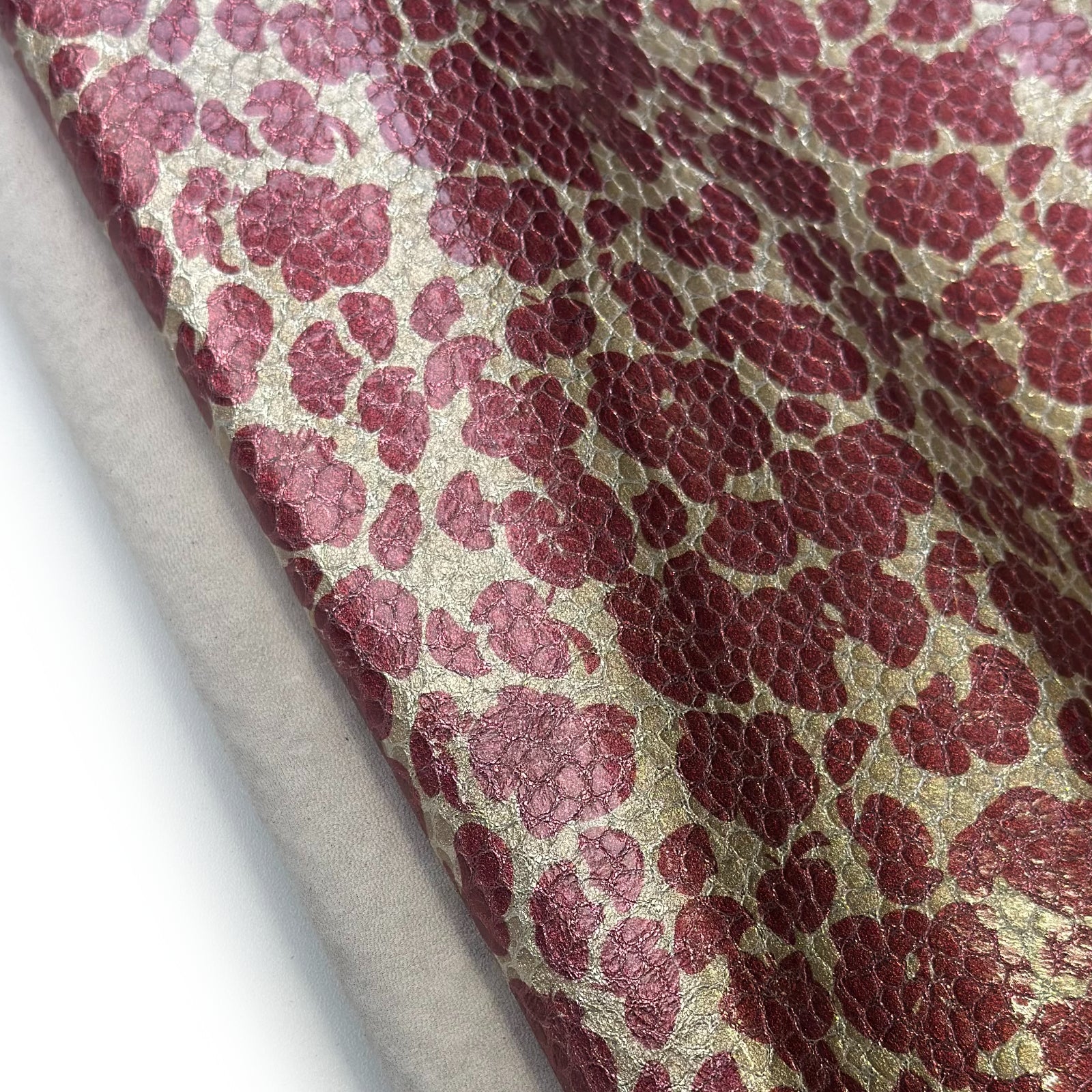 High-quality Italian lambskin leather with a metallic reptile print and a glossy, slightly patent-like finish. The surface has a smooth shine while the leather remains soft, flexible, and easy to work...