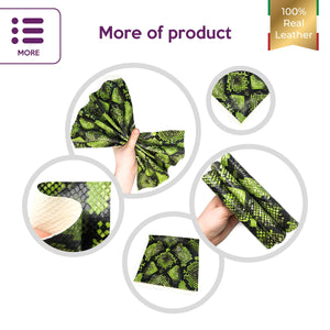 High-quality lambskin leather sheets with snake print. Neon leather pieces with shiny polished snake texture for your best projects! Our mission is to provide only the best quality Italian leather samples to other leather workers, crafters of all kinds, small businesses or Etsy shop for your own projects.