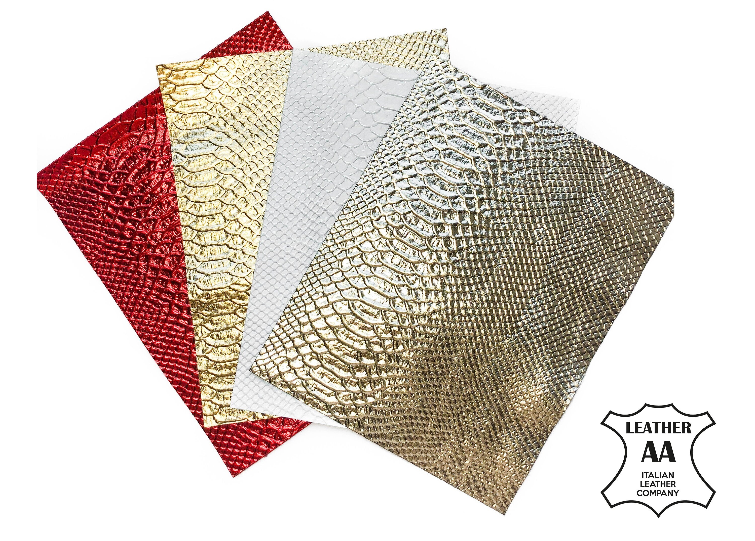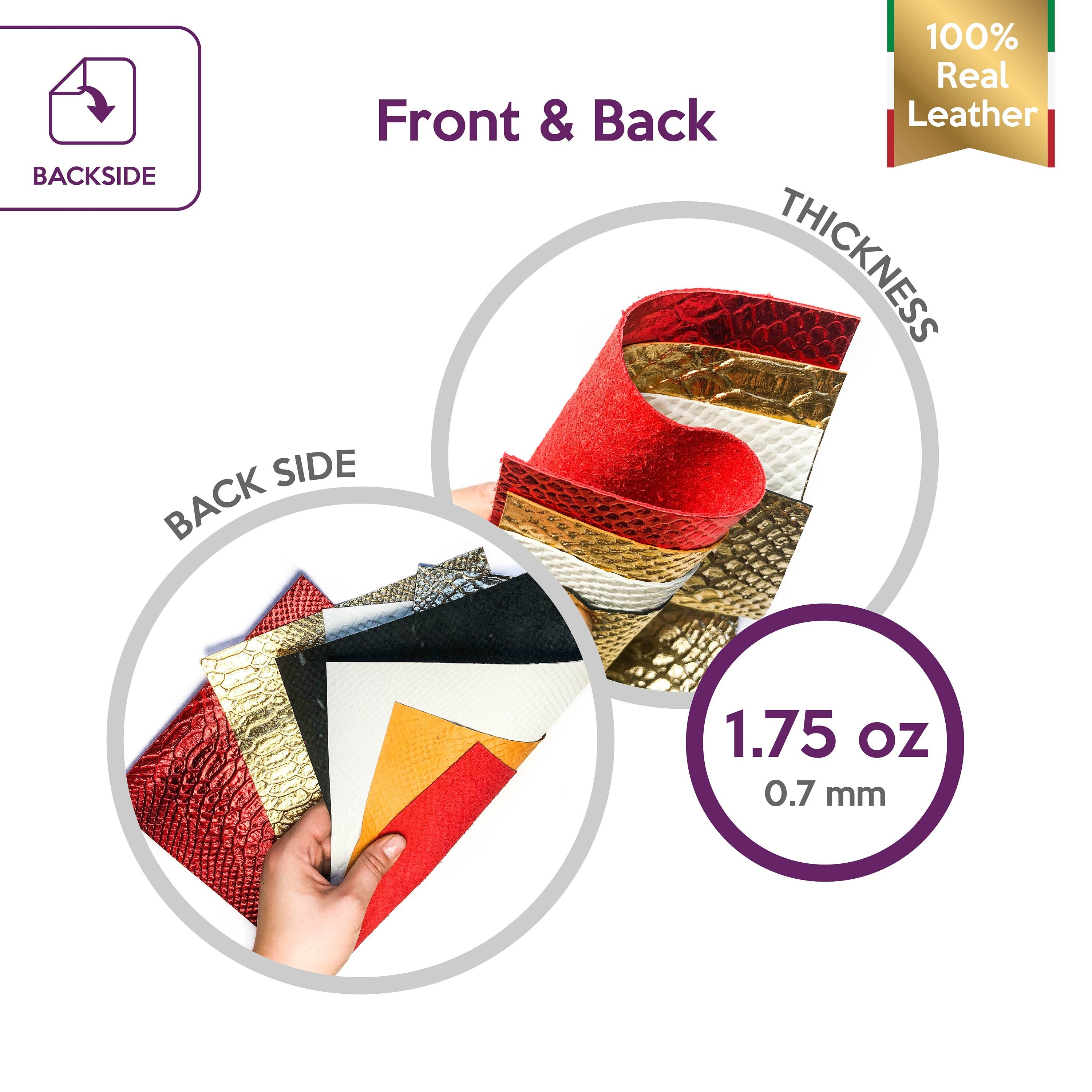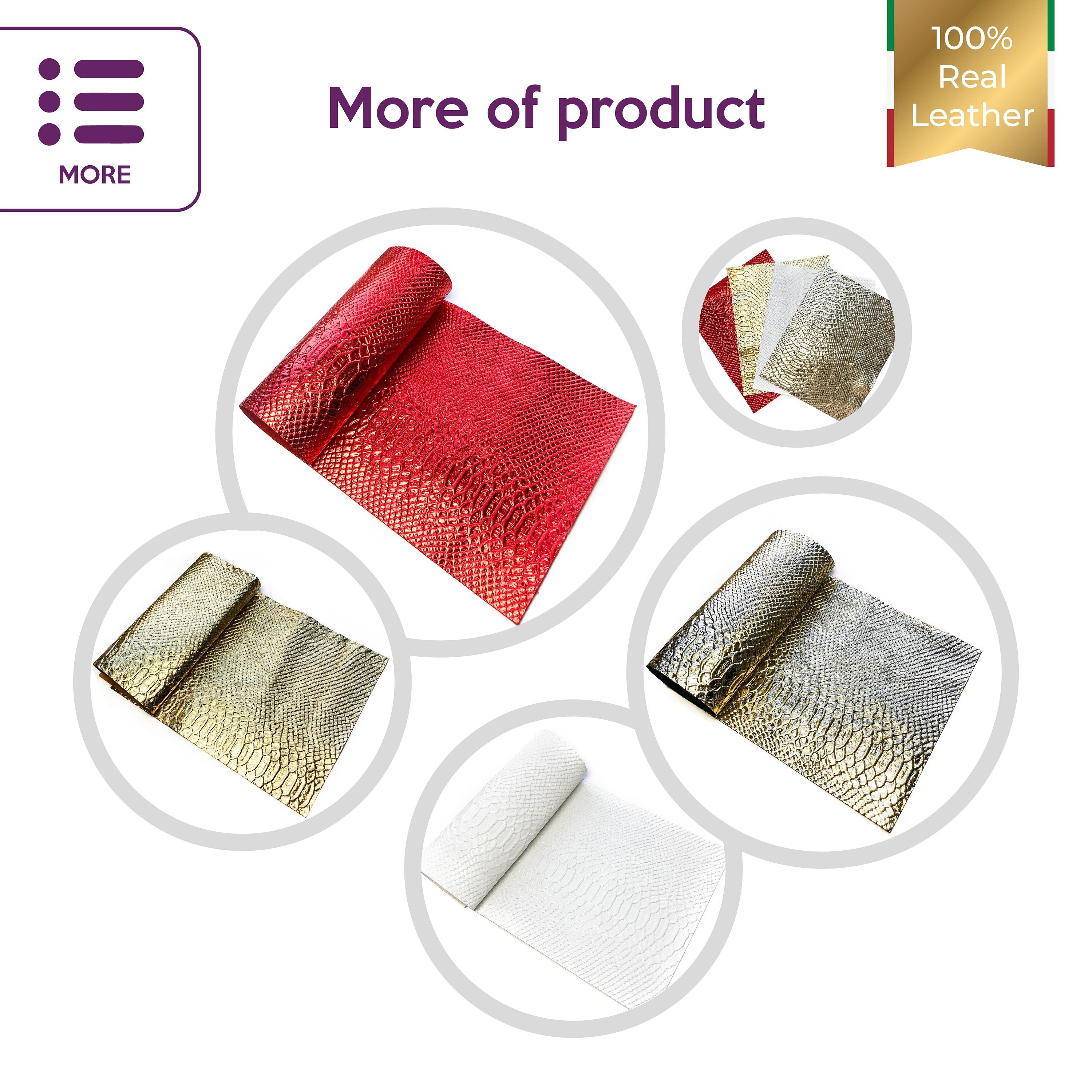 Four different colors. Amazing snake print for your best projects! Our mission is to provide only the best quality Italian leather samples to other leather workers, crafters of all kinds, small businesses, or Etsy shop for your own projects.