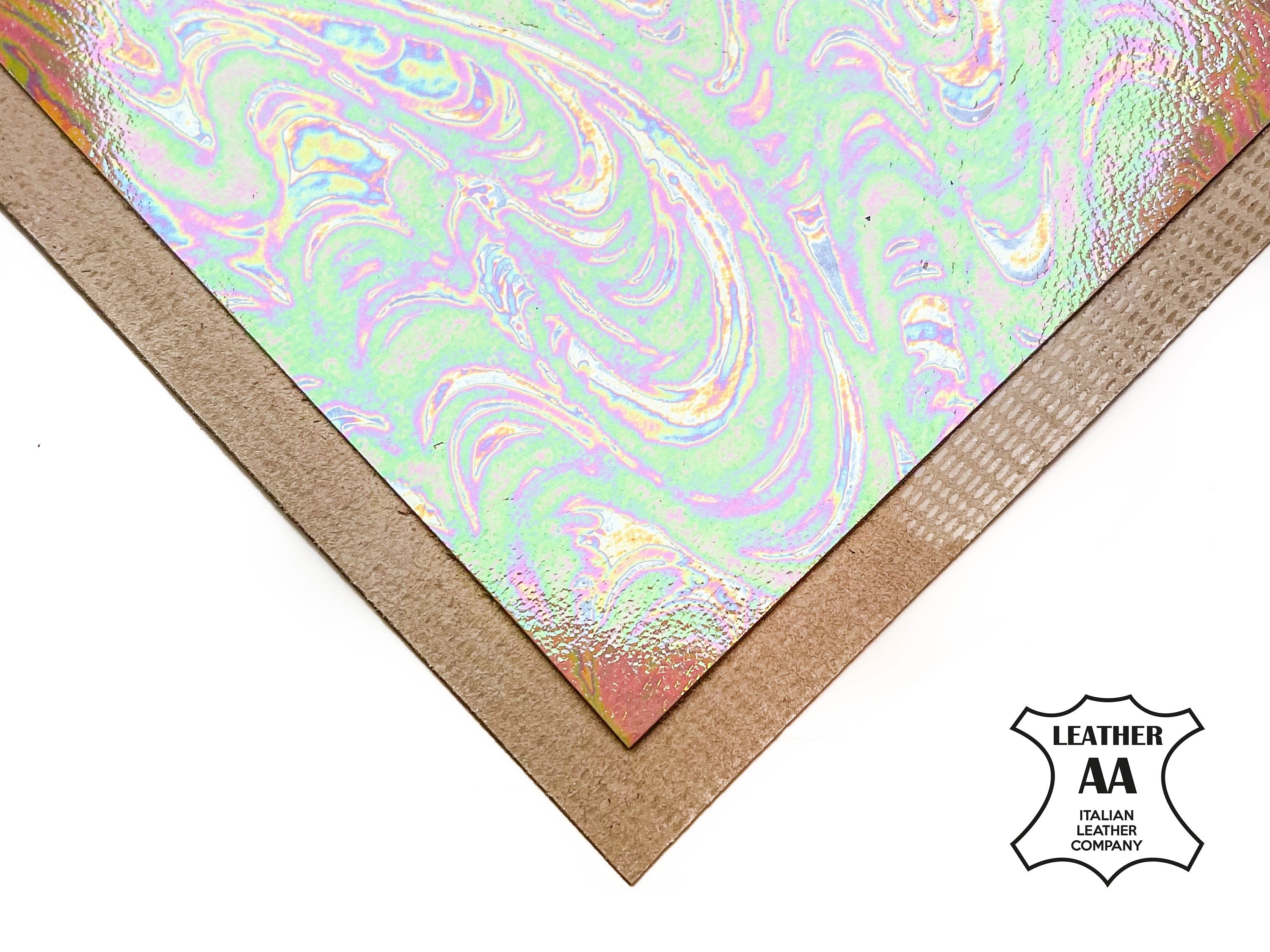 High-quality metallic lambskin leather sheet. Pink gasoline leather scraps for your best projects! Our mission is to provide only the best quality Italian leather to other leather workers, crafters of all kinds, small businesses, or Etsy shop for your own projects.