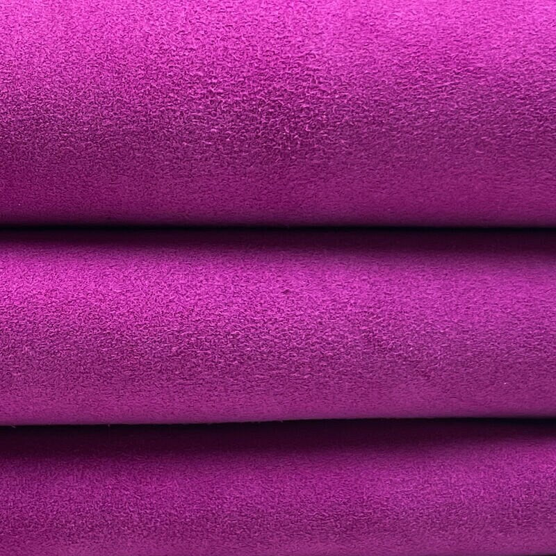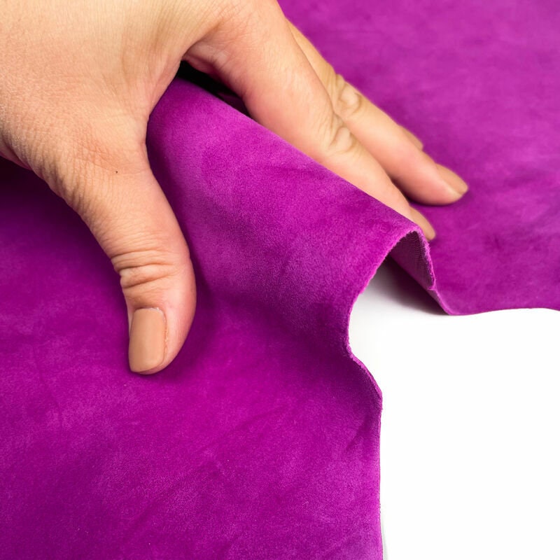 - Soft suede leather pieces. Viola velour material. Natural lambskin hides from the best Italian tannery. Perfect leather for sewing.