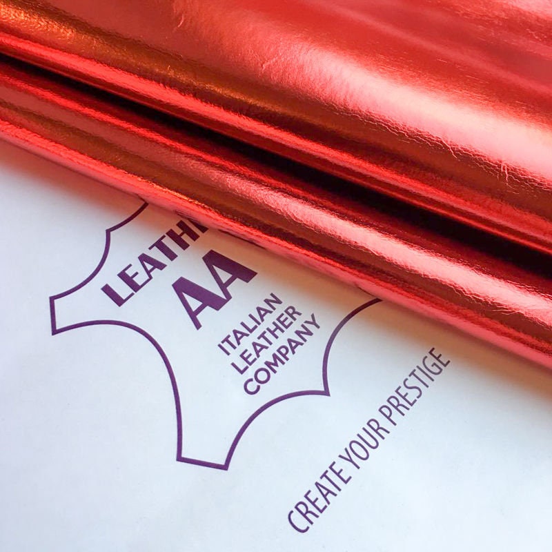 -Leather is medium thin, bit stiff, with visible fine grain. Beautiful bright red color, clean backside. Red Italian lambskin sheets for crafts. Perfect leather for cricut. Ruby red metallic leather will be excellent for all kinds of DIY projects!