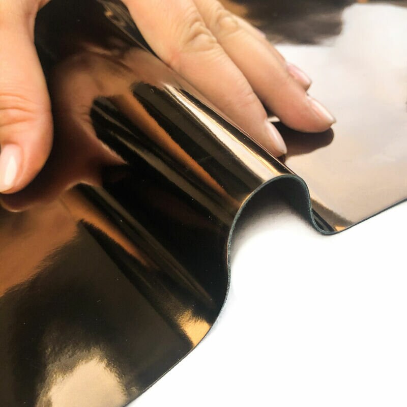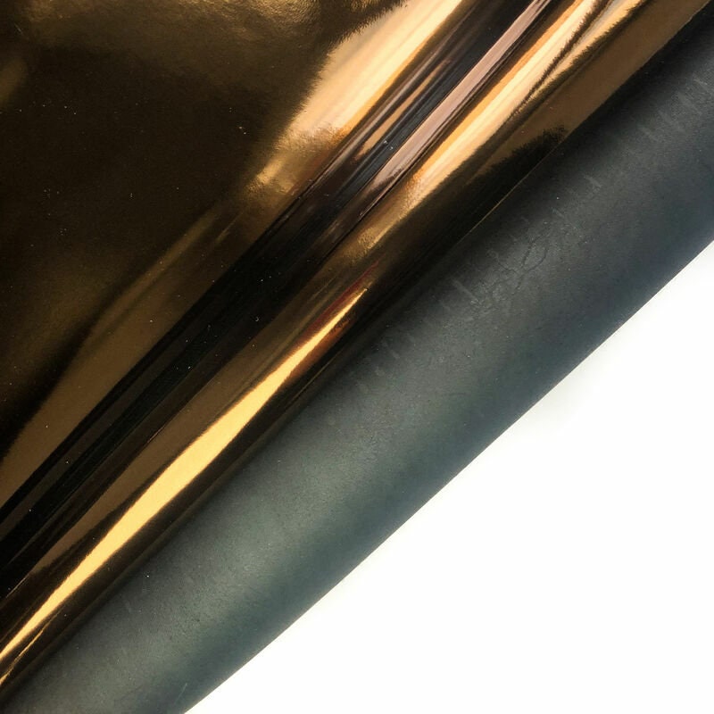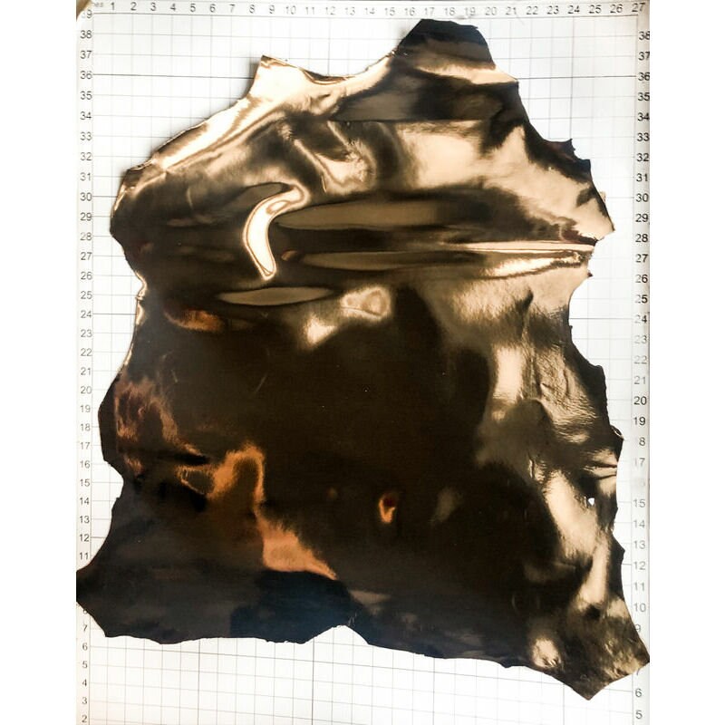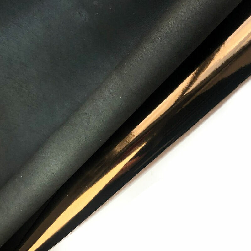 - Shiny metallic bronze leather with black backside. Natural lambskin mirror hides from the best Italian tannery. Perfect leather for sewing.