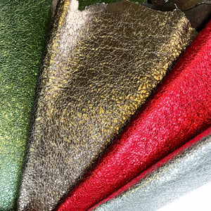 - Christmas is almost here, let's shine! Crunchy metallic foil leather pieces. Natural lambskin hides from the best Italian tannery. Perfect leather for sewing. Choose your color.