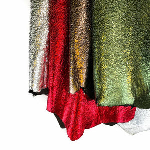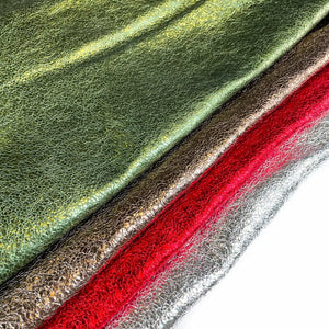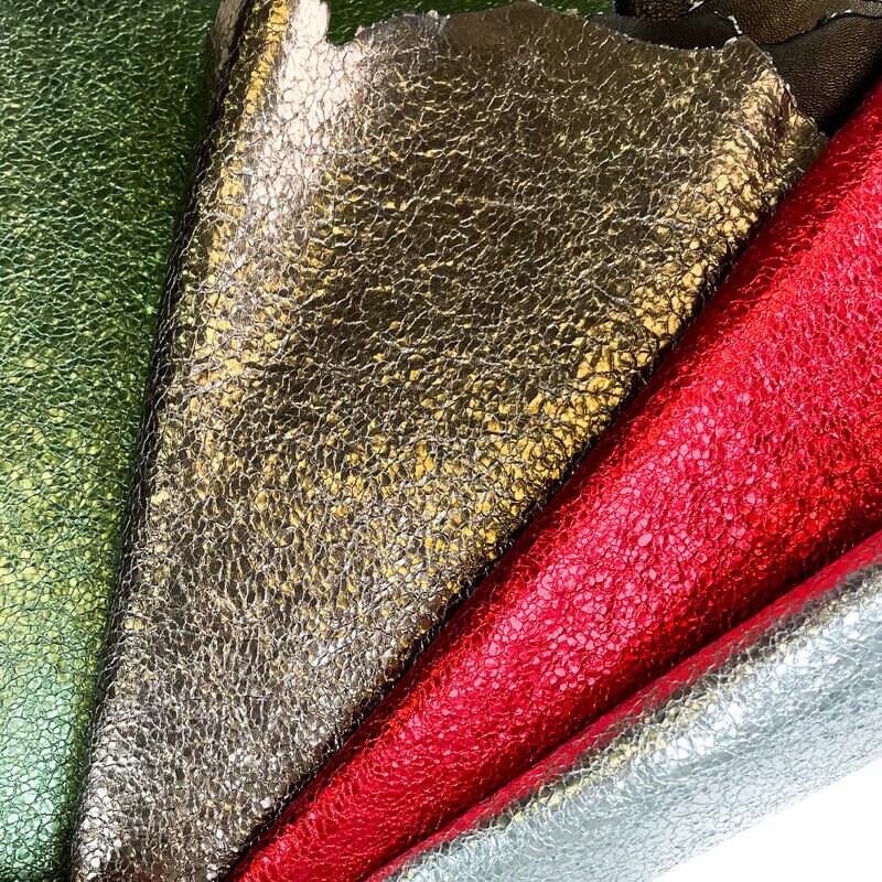 High quality lambskin with shiny metallic foil. Crunchy leather for your best projects! Our mission is to provide only the best quality Italian leather to other leather workers, crafters of all kinds, small businesses, or Etsy shop for your own projects.