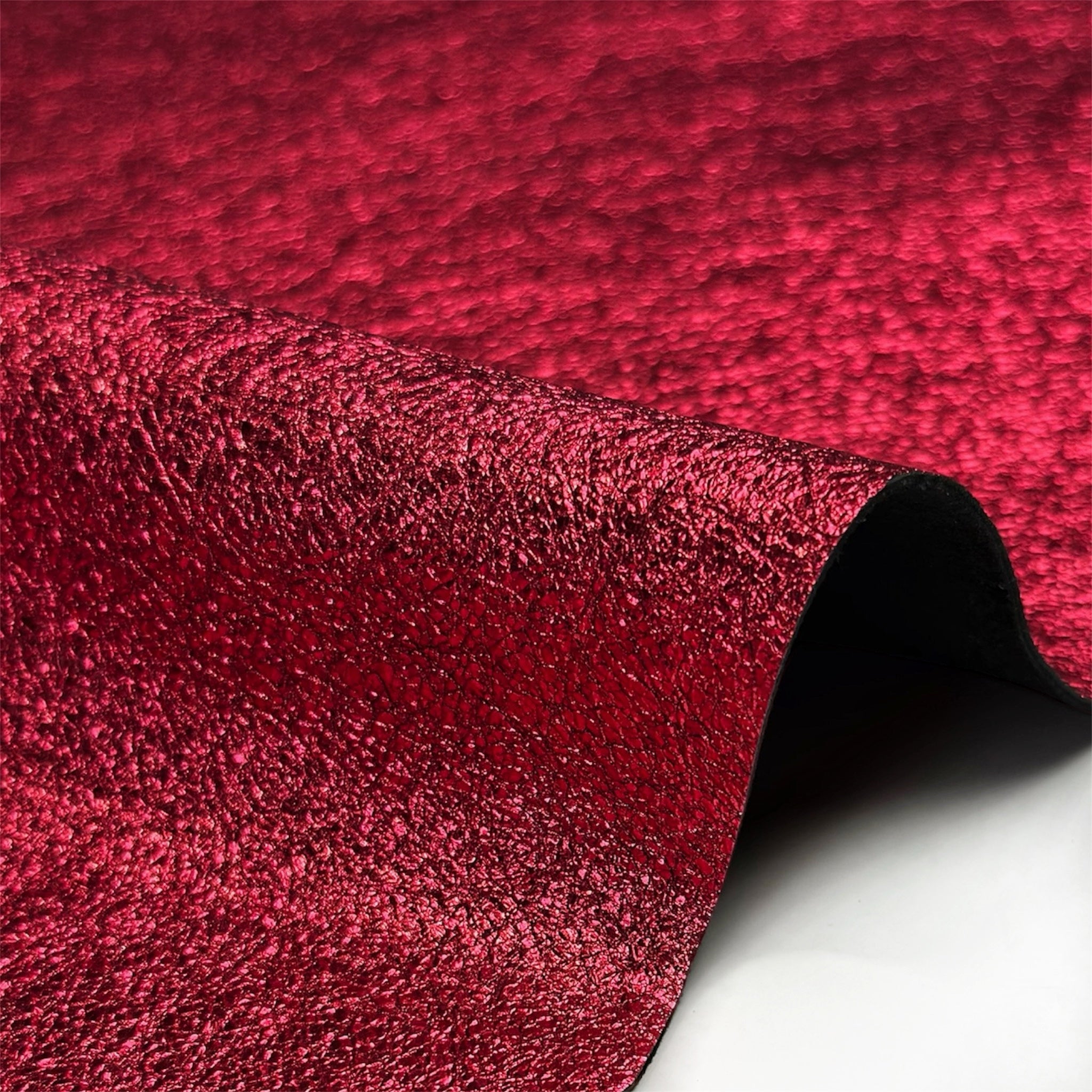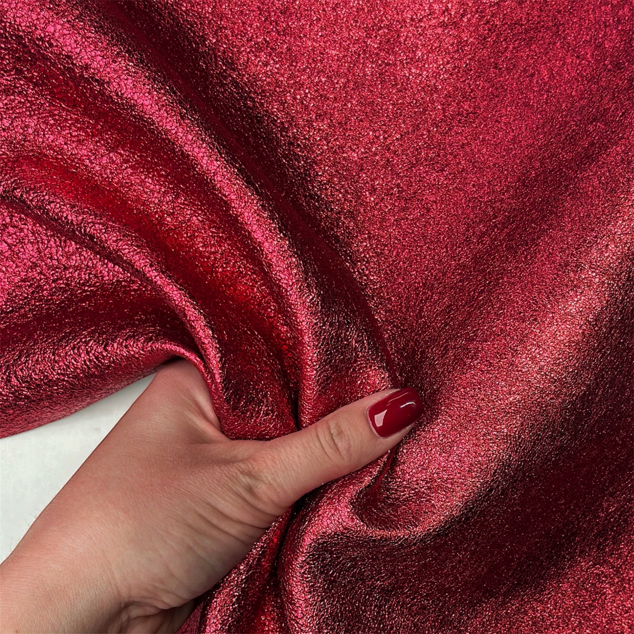 Thick shiny dark red leather pieces. Crunchy lambskin hides.