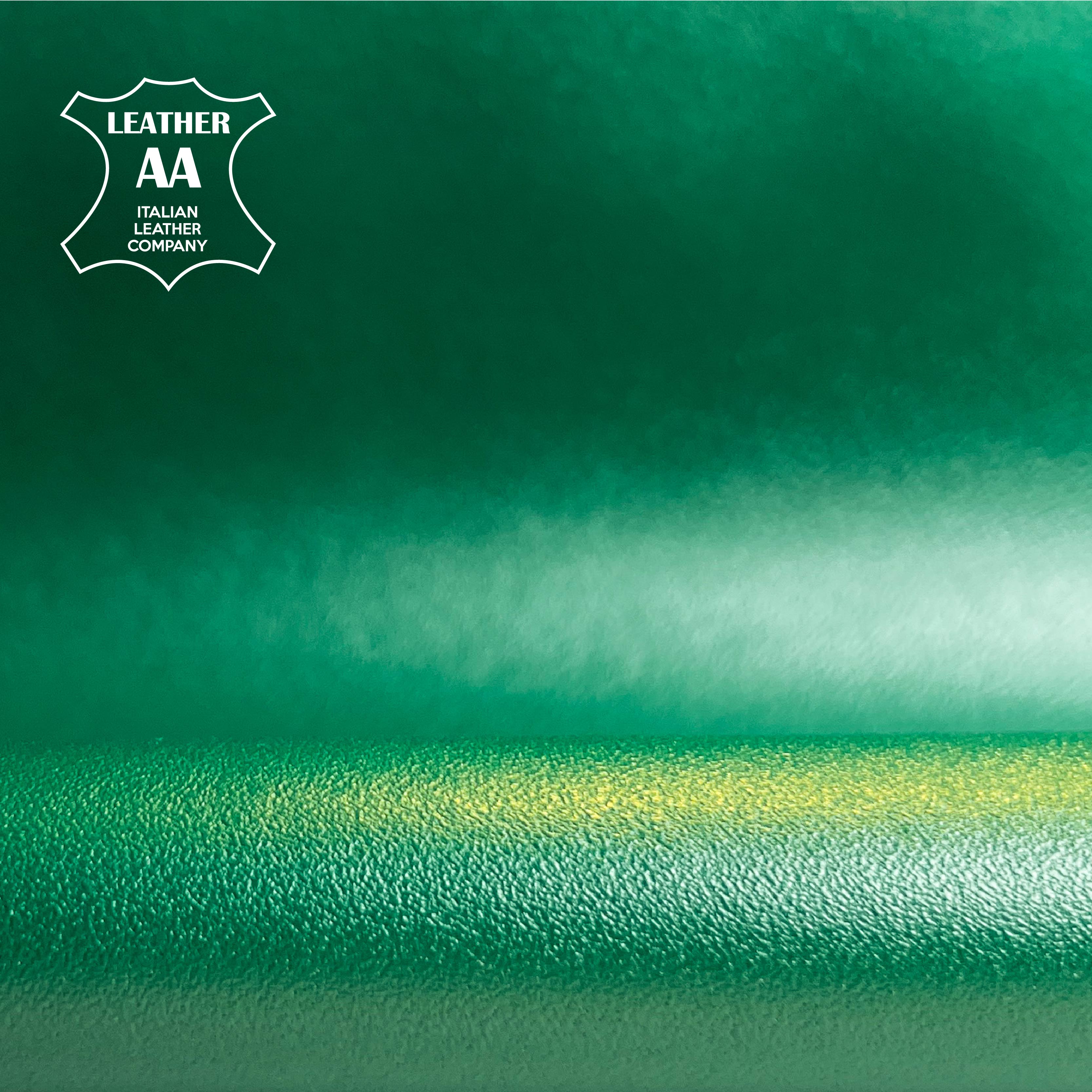 -GREEN Leather pieces, Genuine sheep skin sheets for sewing. Italian quality Leather pieces. Natural animal skin hide for crafting, shoe making, cloth sewing etc. Gorgeous coloring - try it!