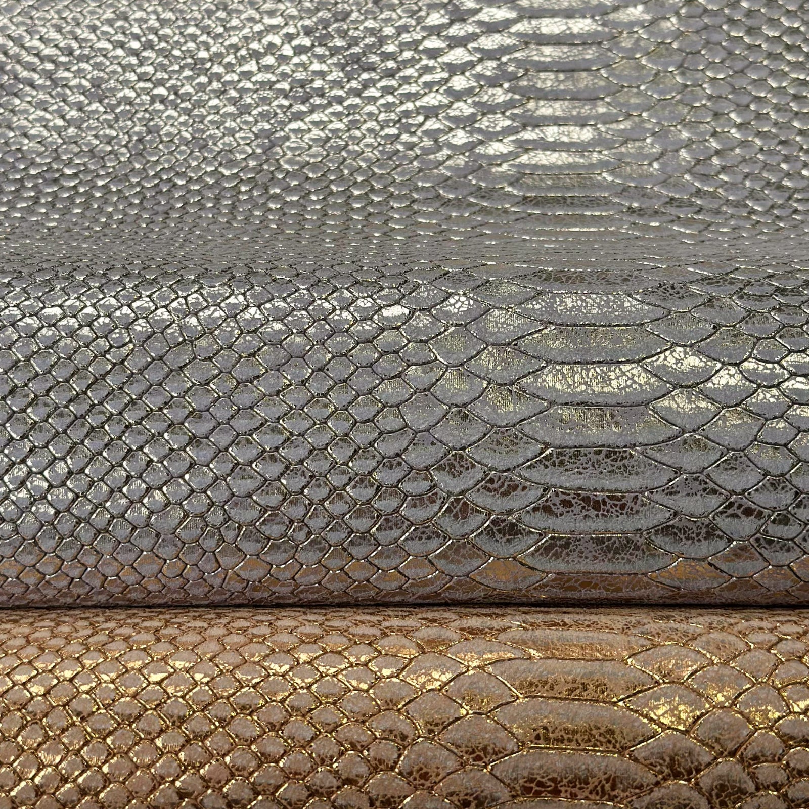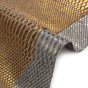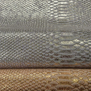 Snake Print Leather Silver/Light Gold And Gold/Bronze Choose One Glossy Piece 1611 Thick 1.1-1.2mm/2.75-3oz