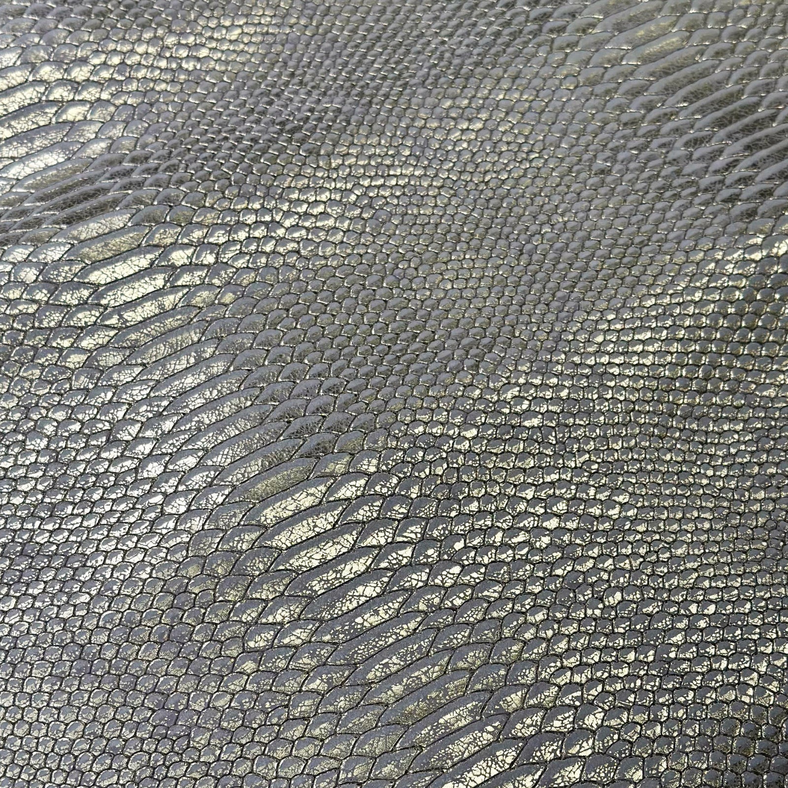 This listing is for one piece of real embossed lambskin leather with a luxury snake print pattern and an elegant glossy metallic finish. These hides are soft yet thick, perfect for standout leather goods or accents.