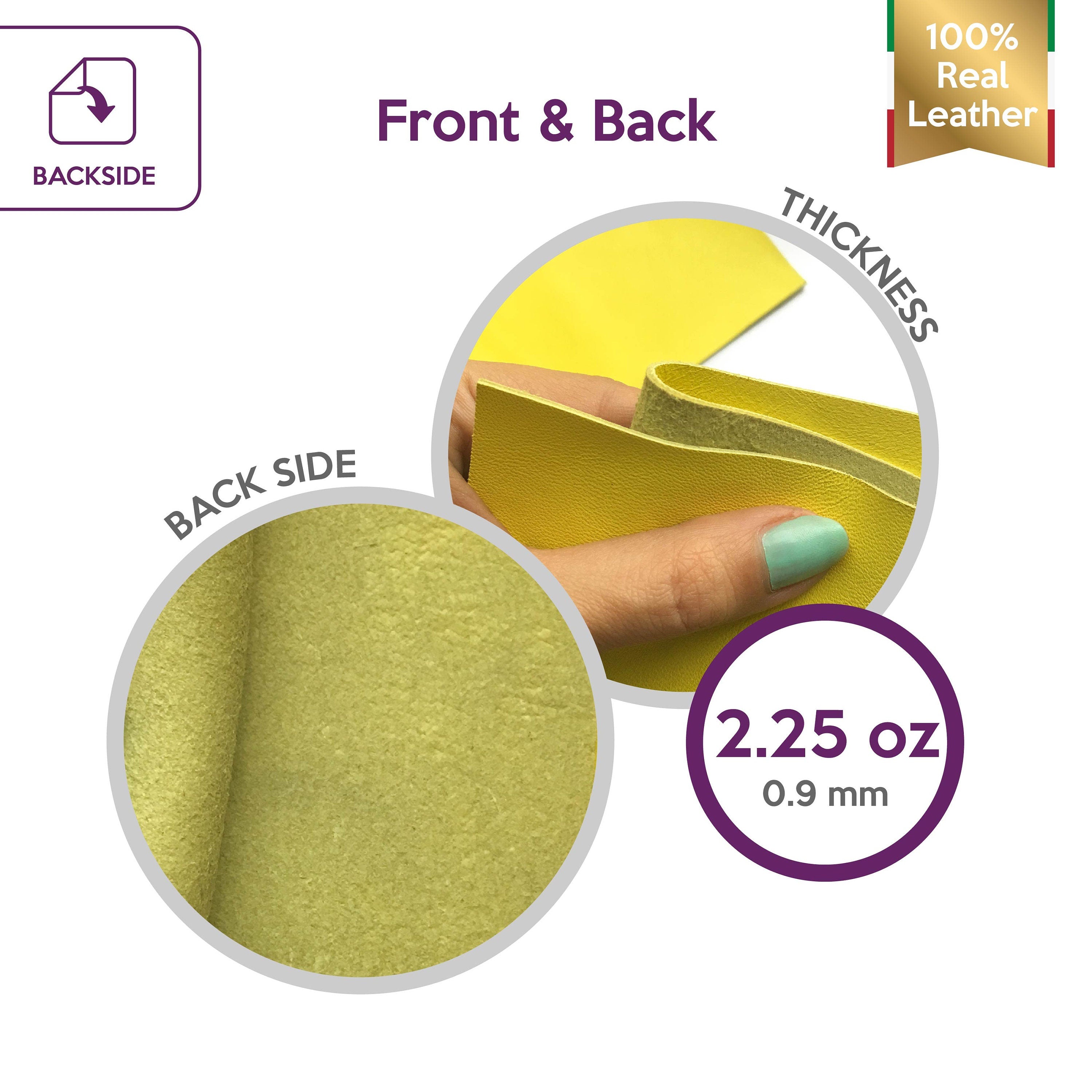 -High quality Italian fabric. Bright yellow leather pieces. Natural animal skin sheets. Very easy to work with. Perfect for jewelry. It will hold shape of the leather product.