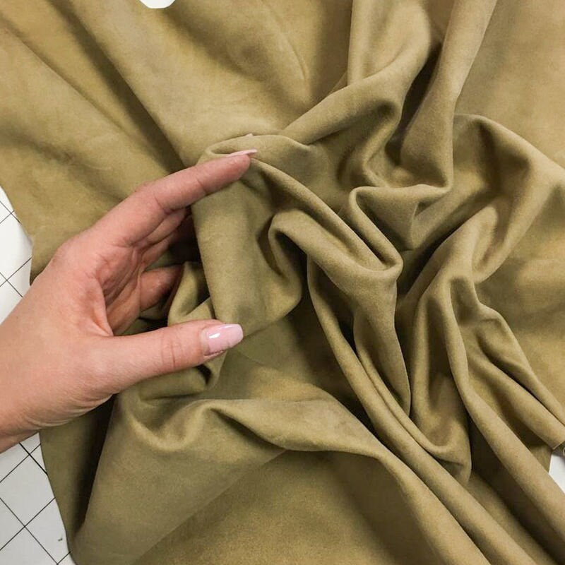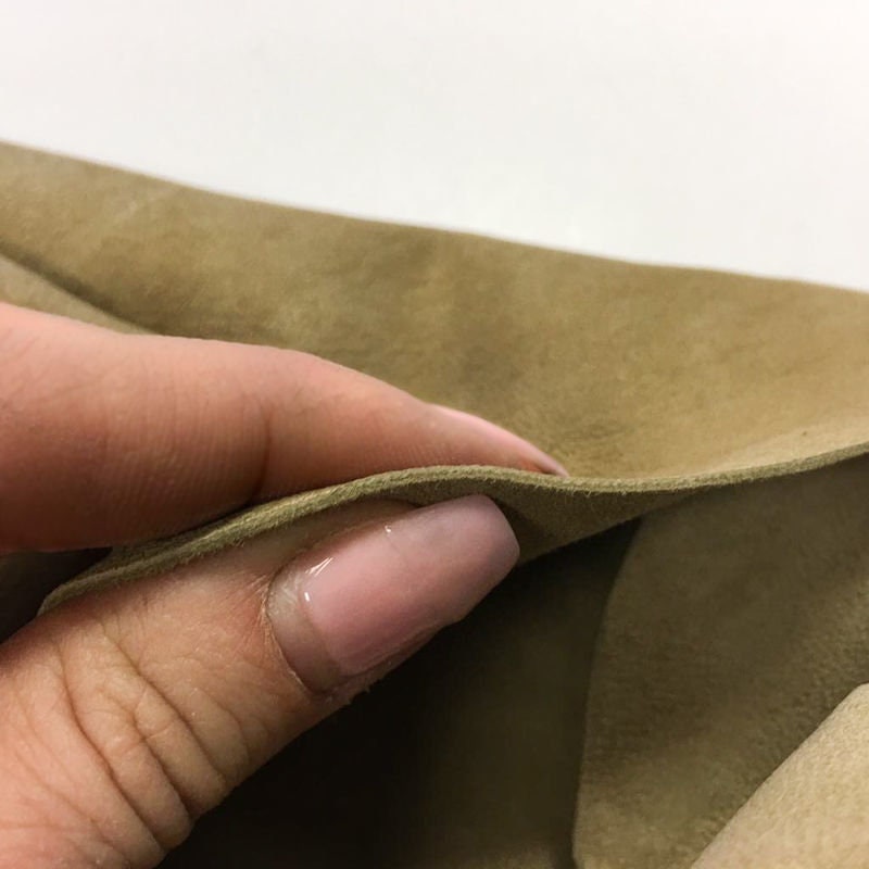 -Sand Beige suede material for sewing. Soft and thin Lambskin Leather pieces. Warm beige color. Loose leather material. Lightweight Suede fabric for hand crafting. Try it!