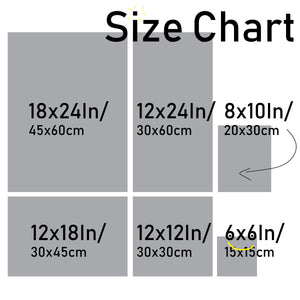 6x6in/15x15cm, 8x10in/20x25cm, 12x12in/30x30cm, 12x18in/30x45cm, 18x24in/45x60cm