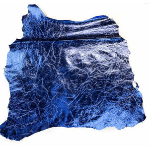 -Crunchy metallic foil leather pieces. Natural sparkly lambskin hides from the best Italian tannery. Perfect leather for sewing. Shiny navy leather for your best projects!  Name: Crunchy Navy Code: 997 (Metallic)...