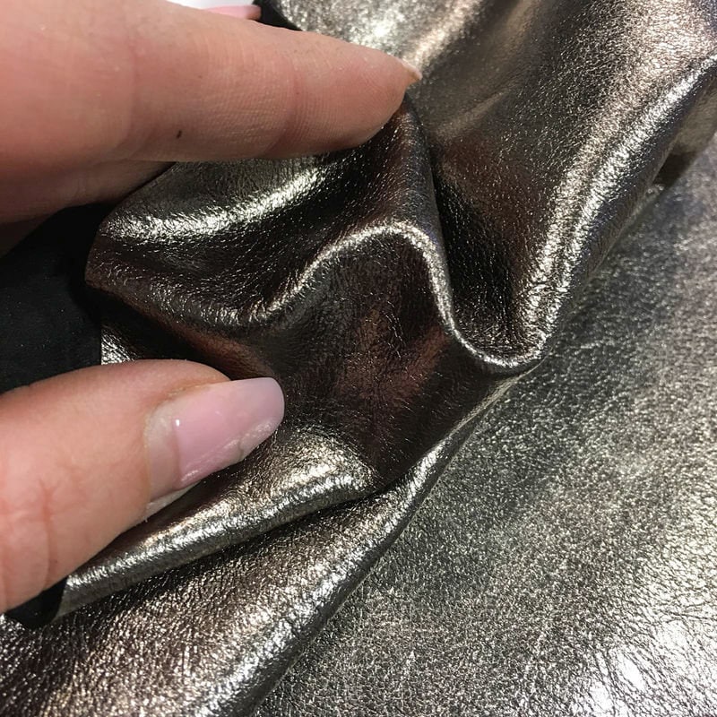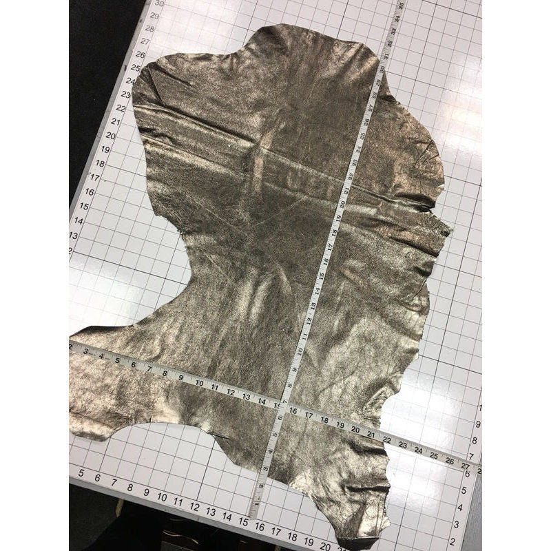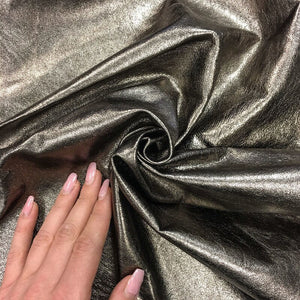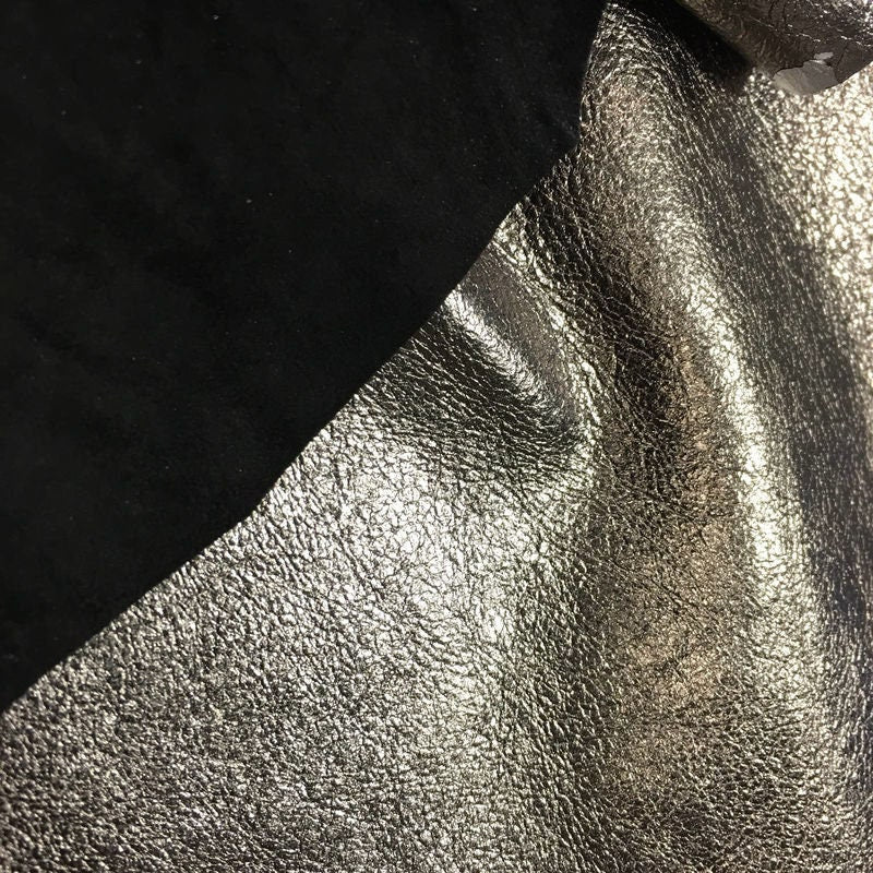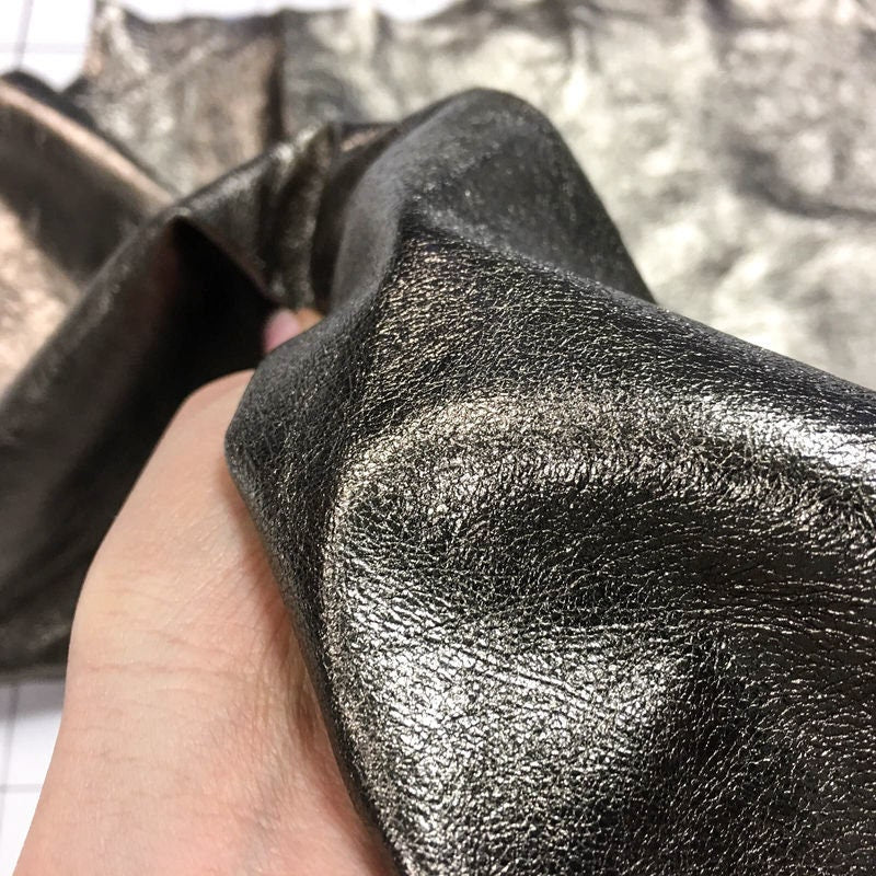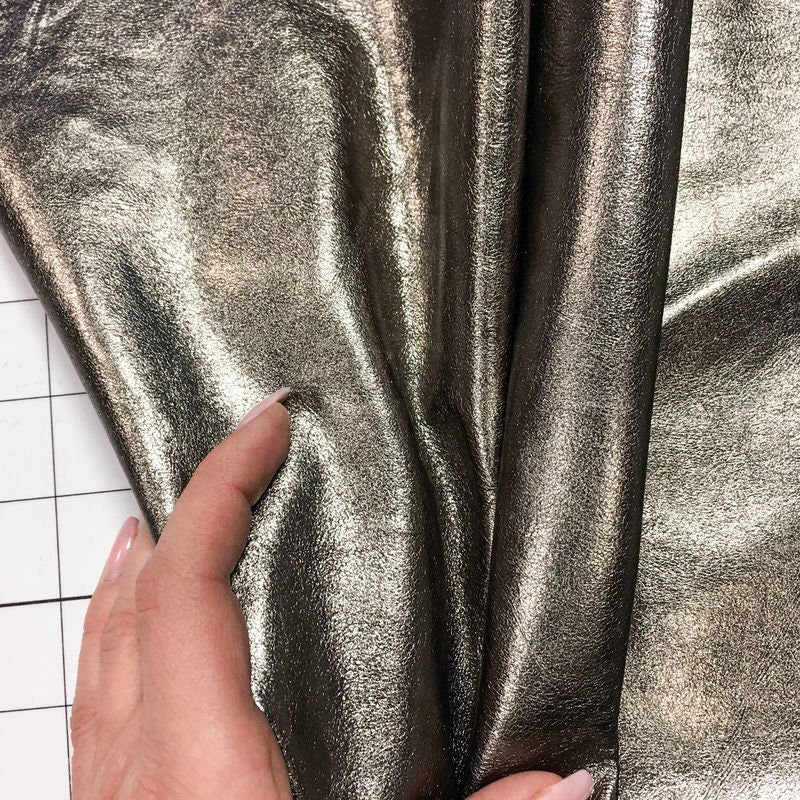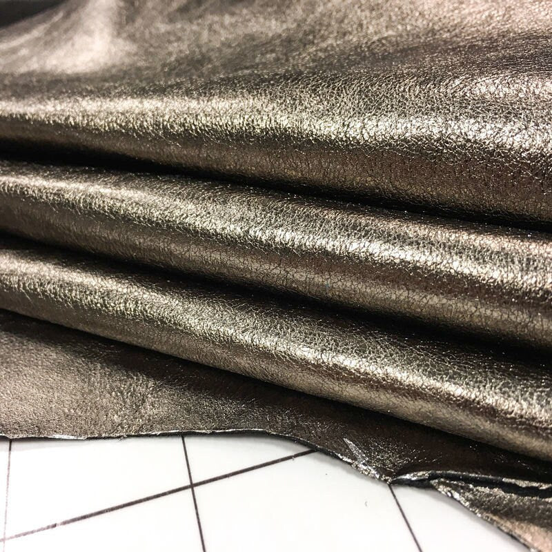 -BRASS leather fabric, Genuine Lambskin Leather for sewing. Thin Brass Metallic Leather material. Shinny metallic leather print. Italian quality leather for handcrafting, shoe making and sewing in general. Fantastic dusty shine. Gorgeous Leather print. Try it!