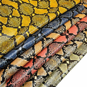Colorful leather pieces with snakeskin print. Textured leather for your best projects! Our mission is to provide only the best quality Italian leather to other leather workers, crafters of all kinds, small businesses, or Etsy shop for your own projects.
