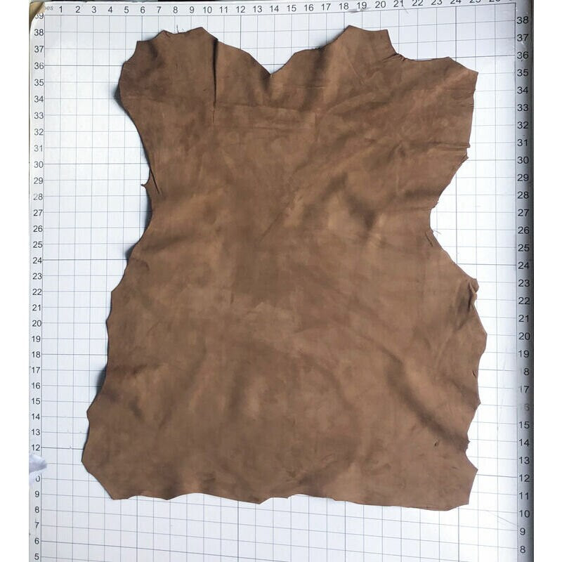 - Soft brown suede leather hides for sewing. Soft, pleasant and really nice velour material. Colored throughout - back is the same color as front. Nice suede leather pieces, soft and rich color.