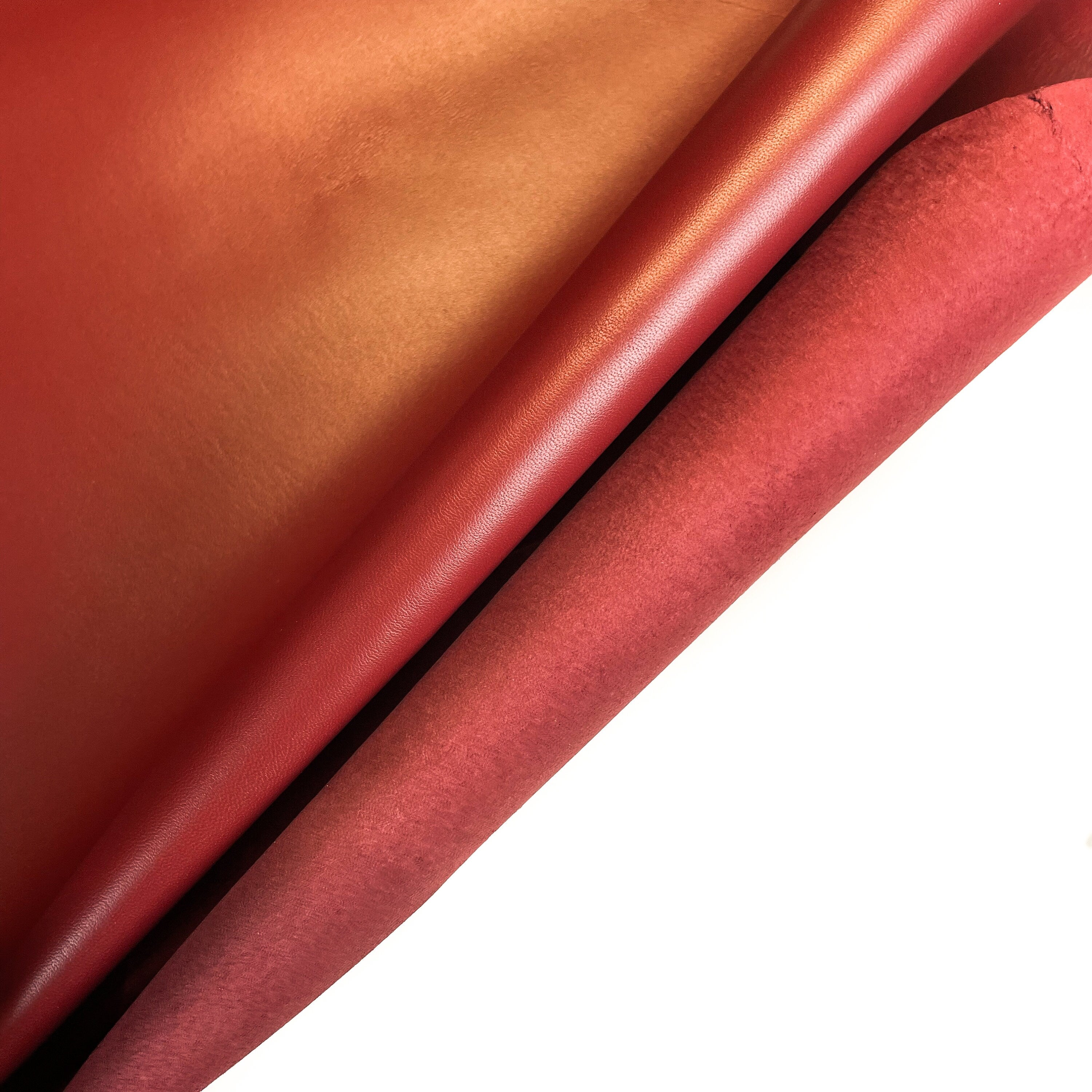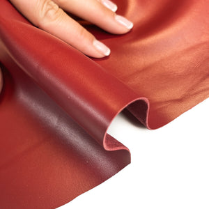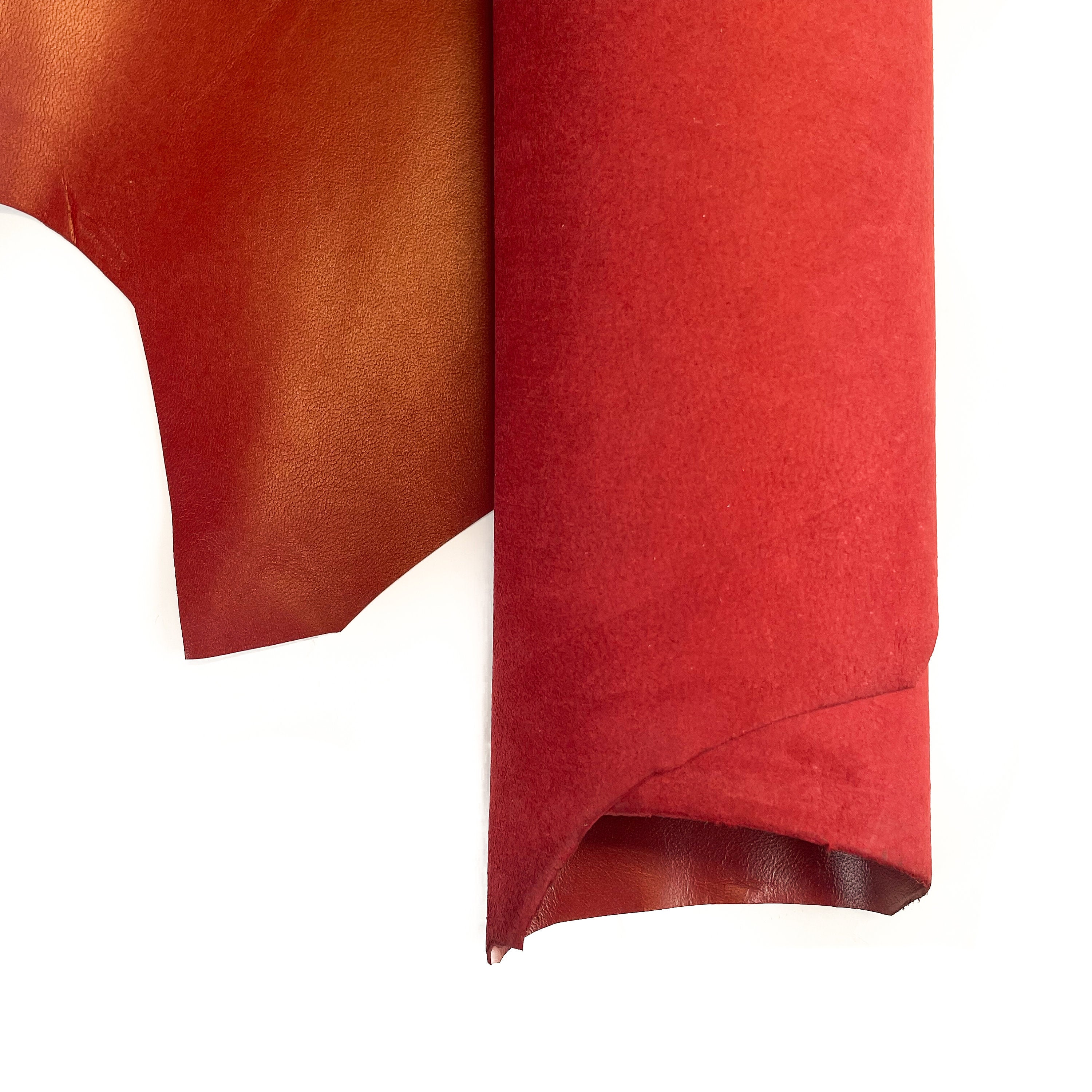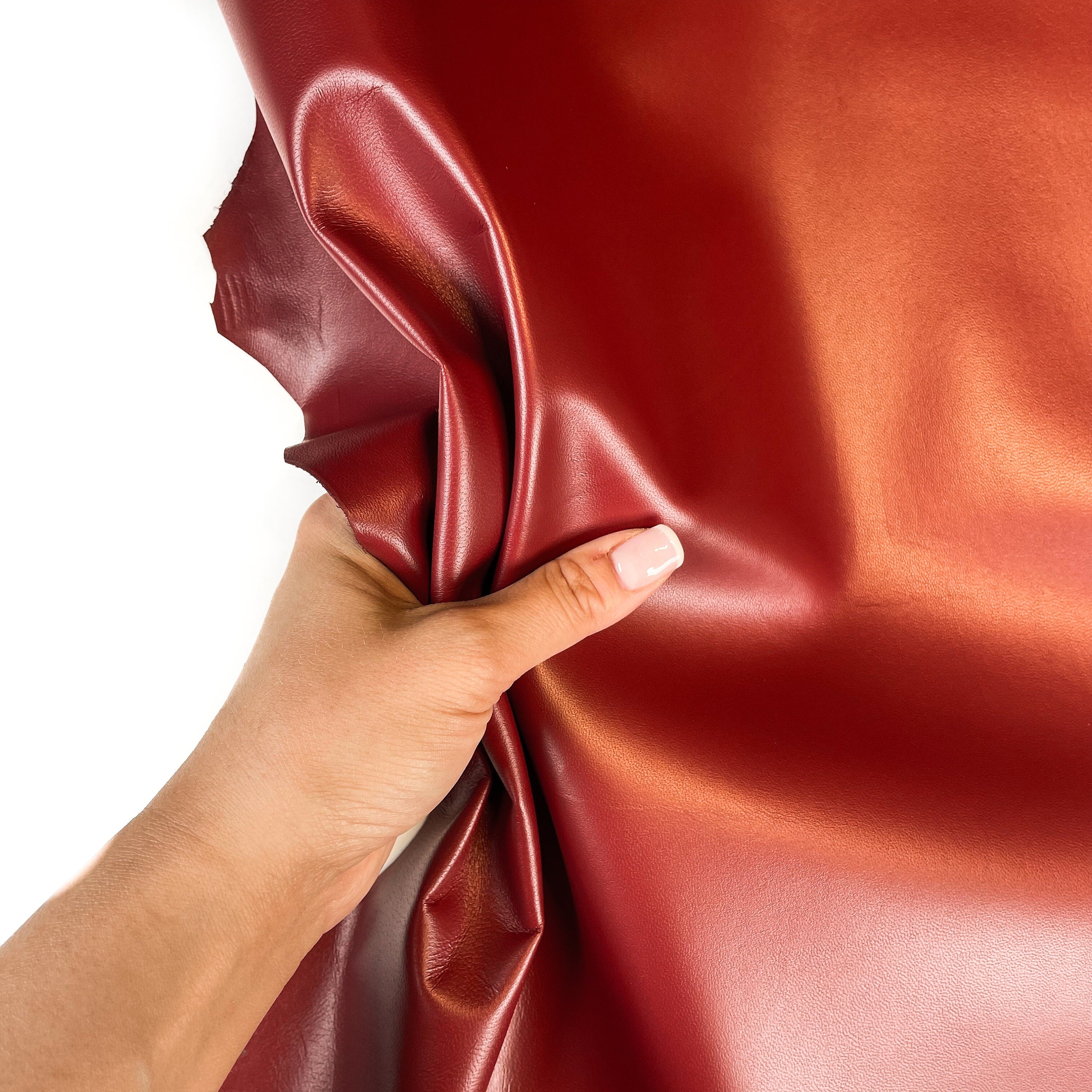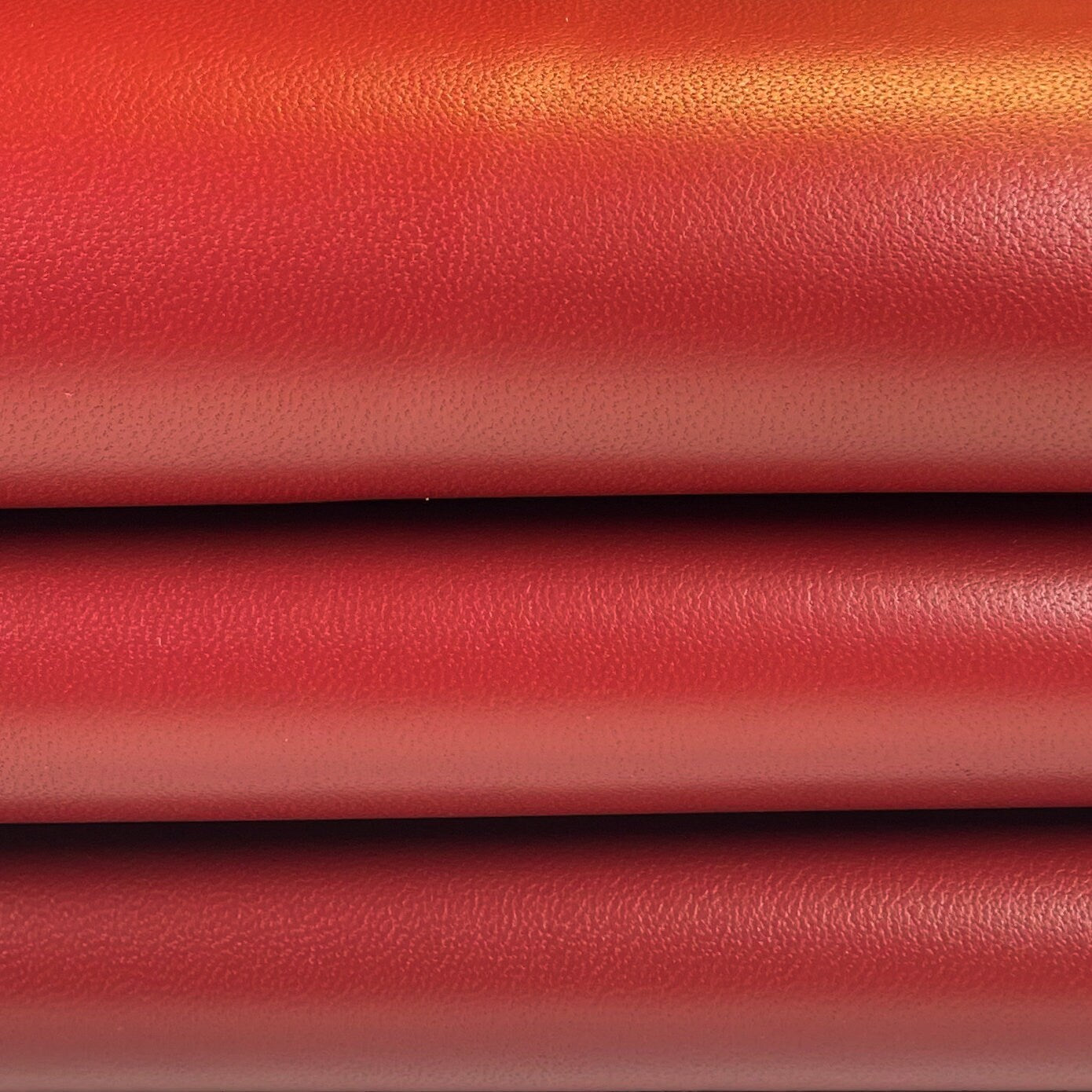 Red leather skins. Genuine lambskin material for sewing. Amazing leather for bag and purse crafters will be long-lasting. Our mission is to provide only the highest quality Italian leather to other leather workers, crafters of all kinds, small businesses, or shops for your own projects.