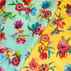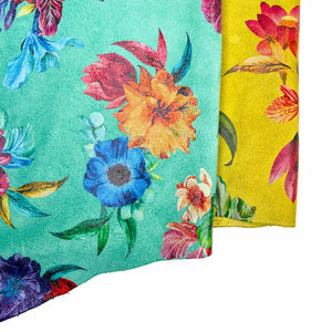 Floral Print Cowhide Leather Mint Green and Yellow 0.7 - 0.9mm Colorful Poppies 1387
