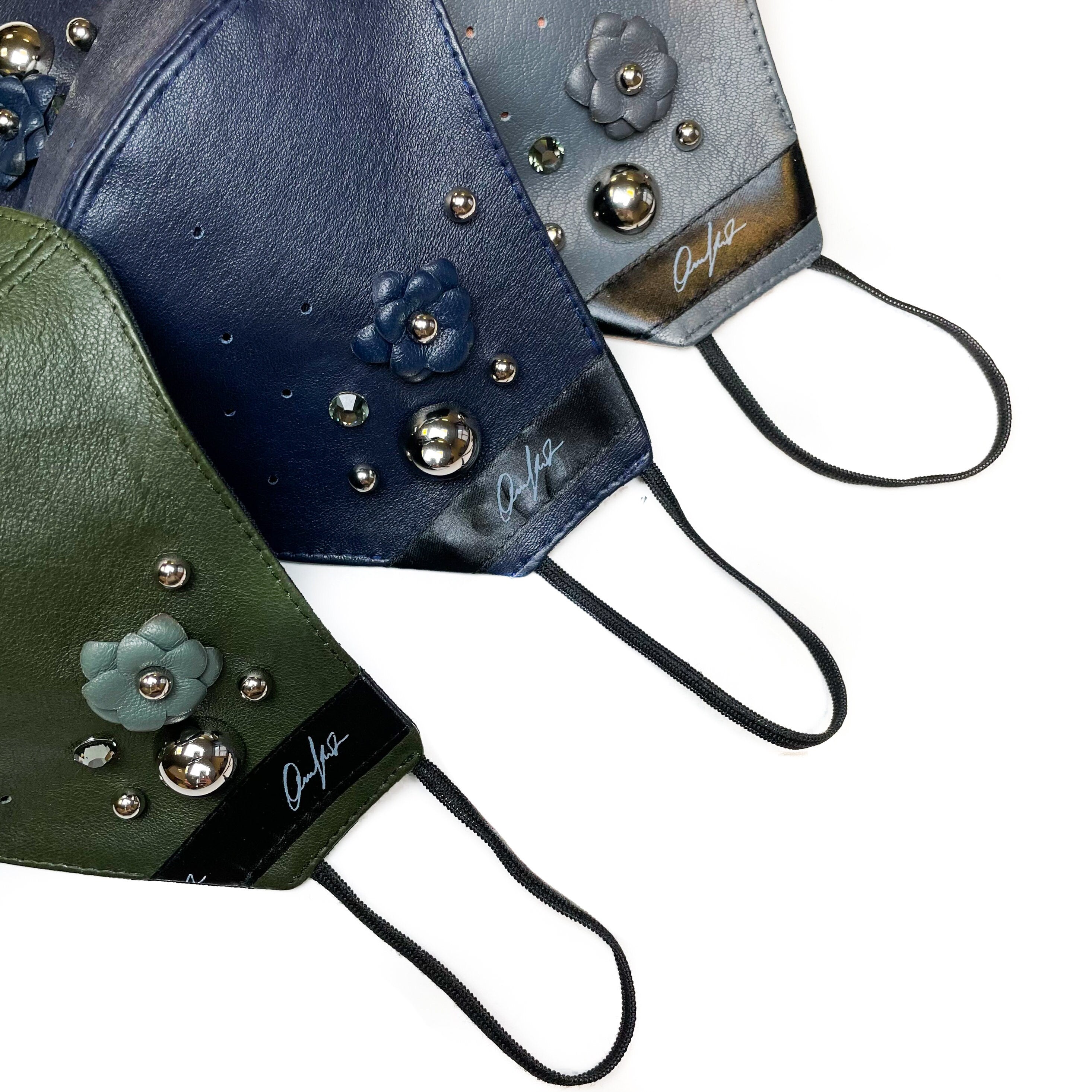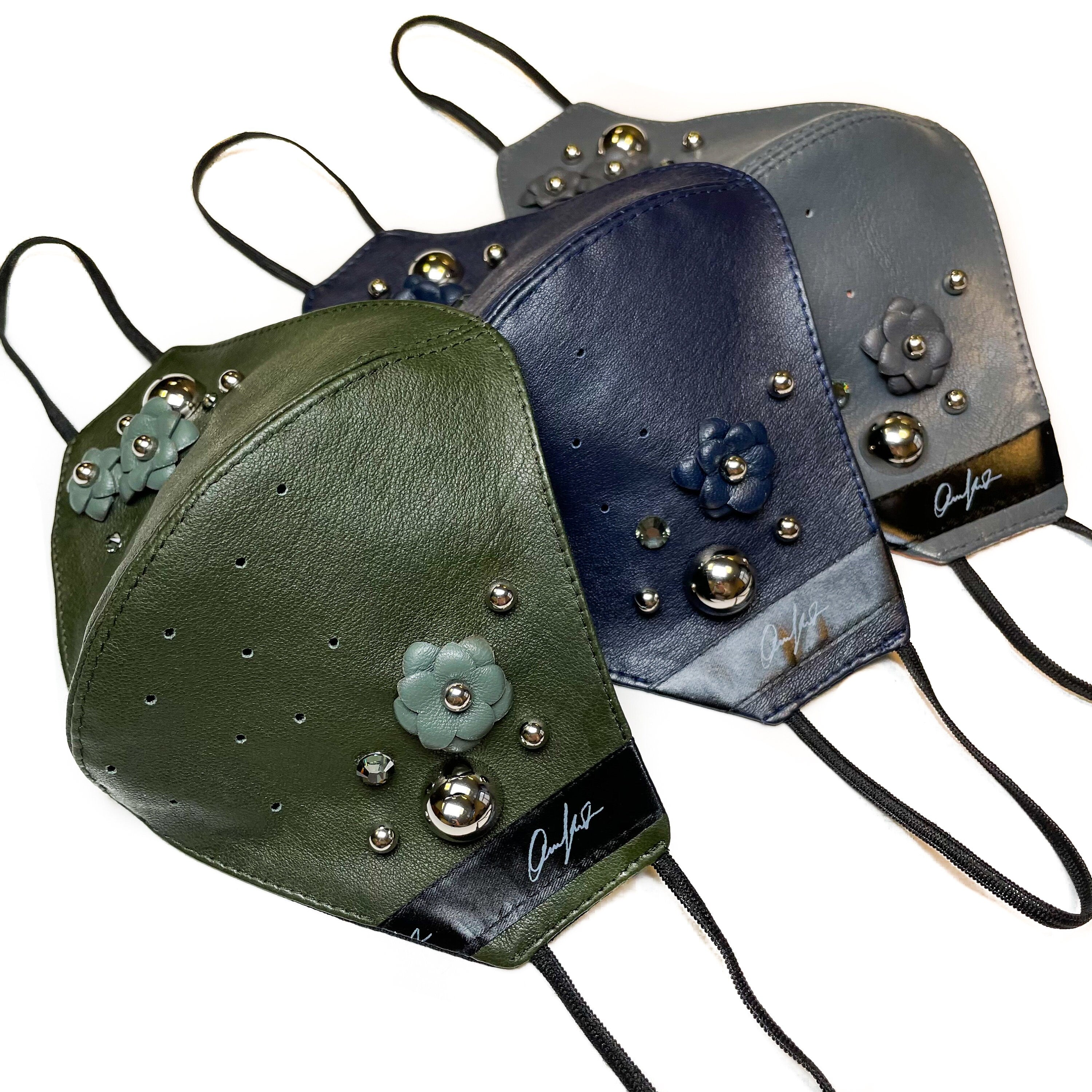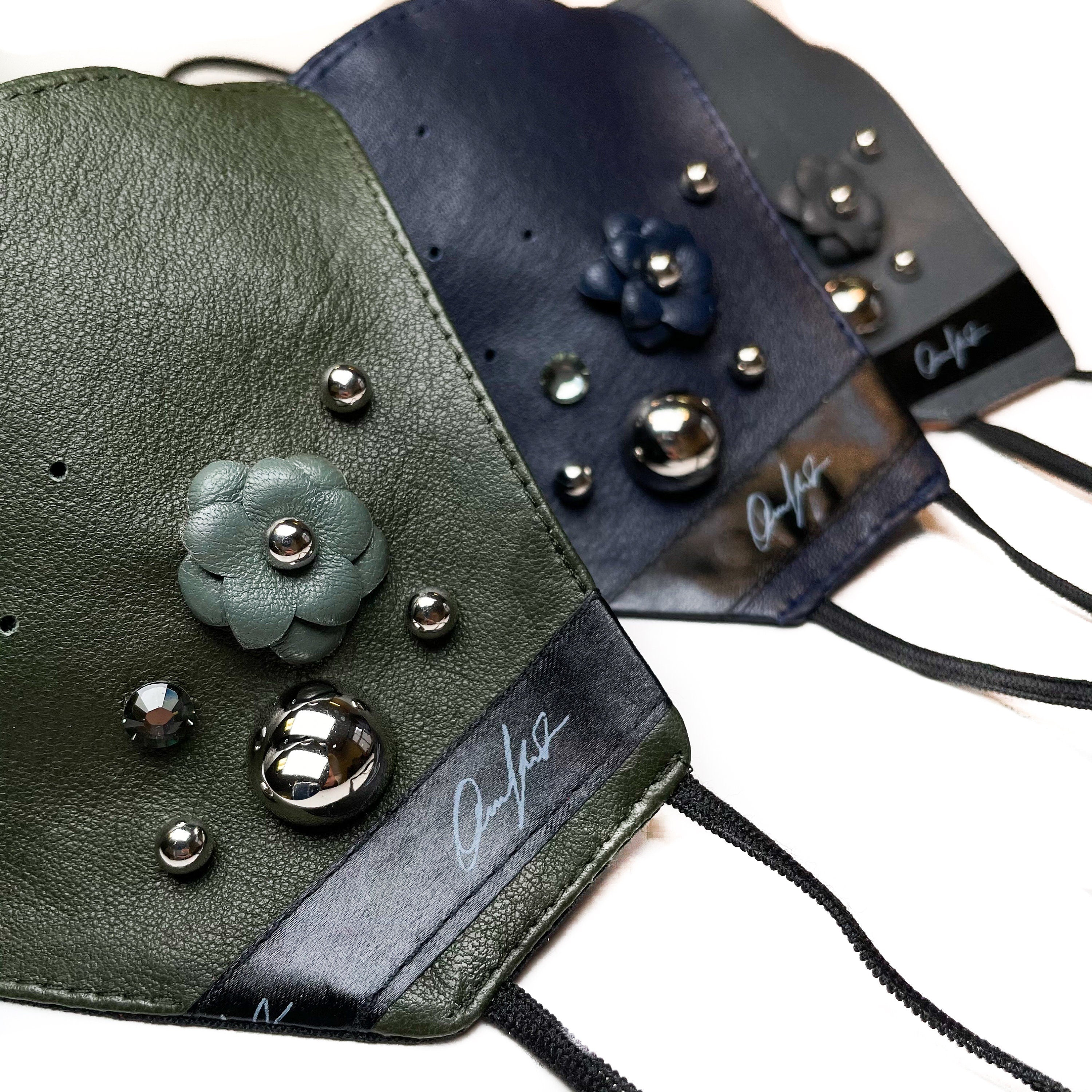 Limited Winter Edition! Reusable Leather Face masks with Handmade Italian Leather Flowers and SWAROVSKI crystals