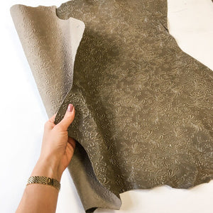 Khaki Green Flower Print Lambskin 1.1mm/2.75oz / COVERT GREEN 852