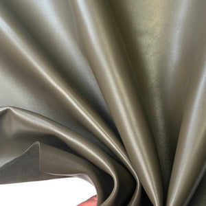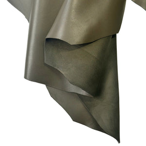 This premium lambskin leather in a deep, shiny dark khaki green offers a luxurious finish with a soft, supple hand. Ideal for a variety of crafting and DIY projects, including leather goods, accessories, garments, and small upholstery items.