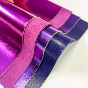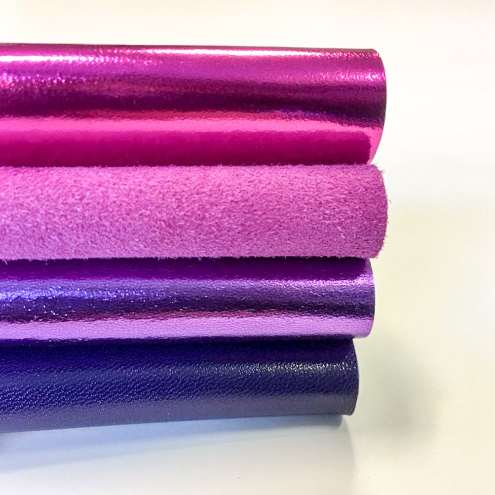 Bright PURPLE SHADES Genuine Sheep leather sheets 4 pieces of hot pink scraps purple metallic, blue leather pieces for crafts mix 5x5 inches