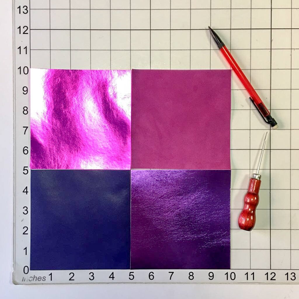 Neon Purple Shades Lambskin Sheets 4 Purple Metallic 5x5 inch Pieces