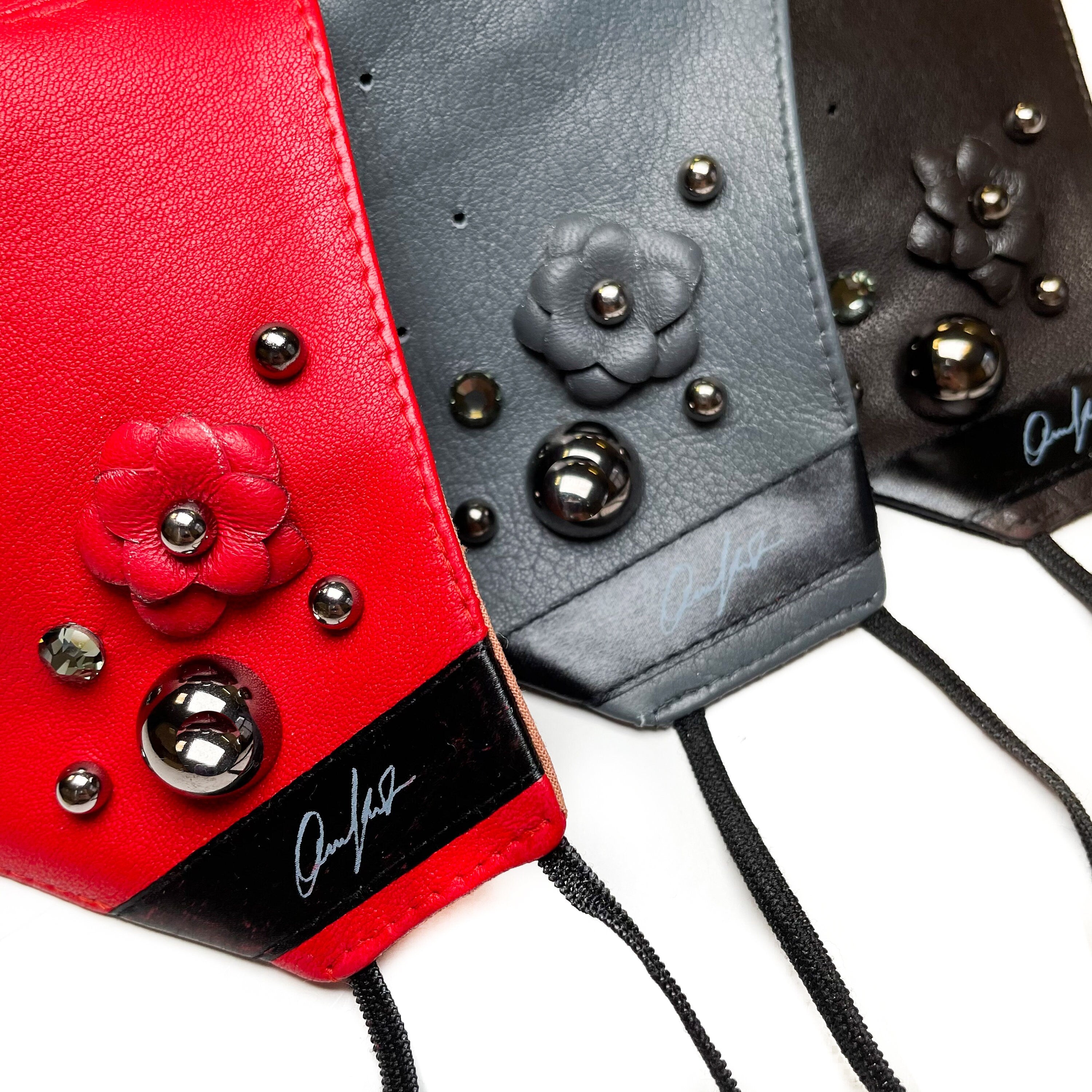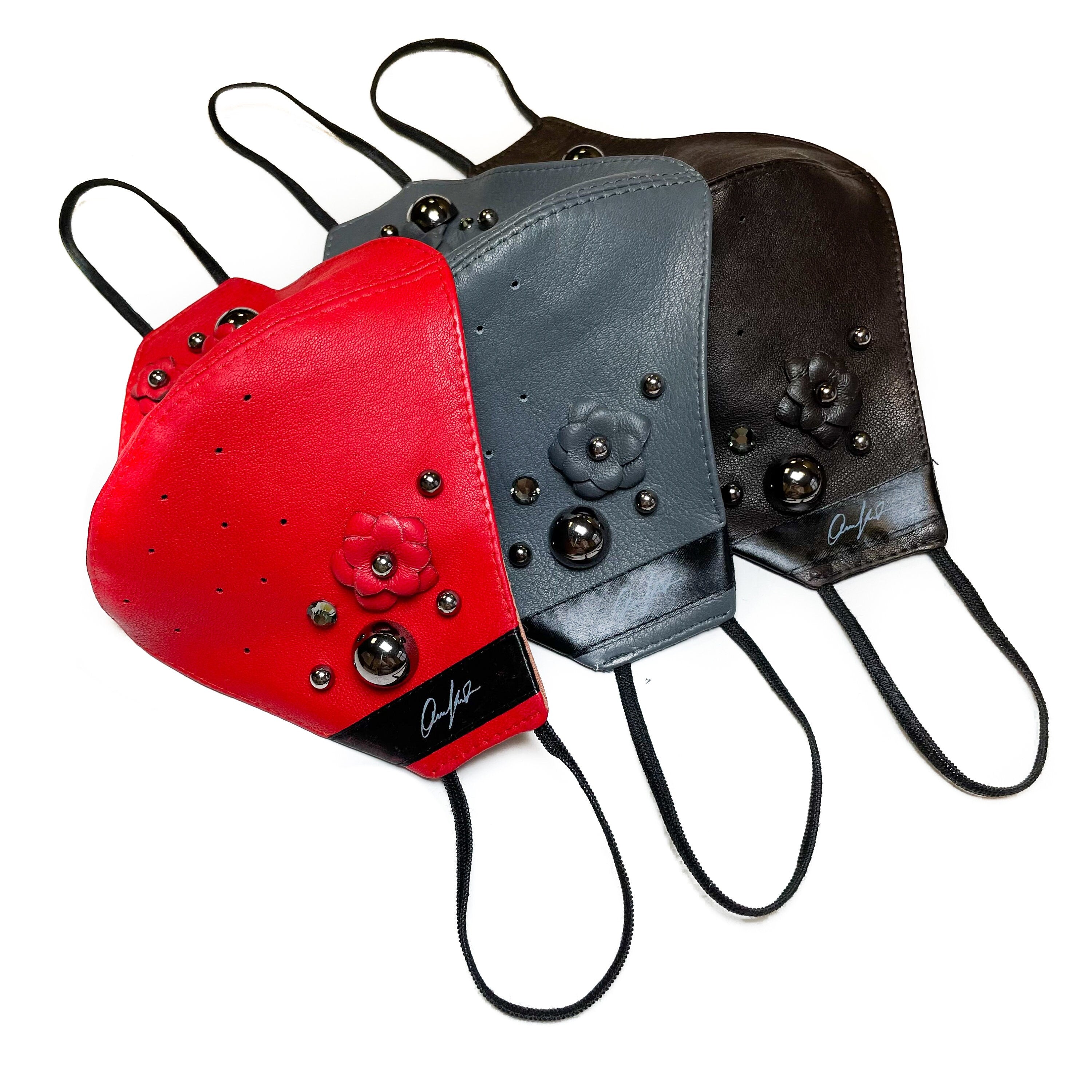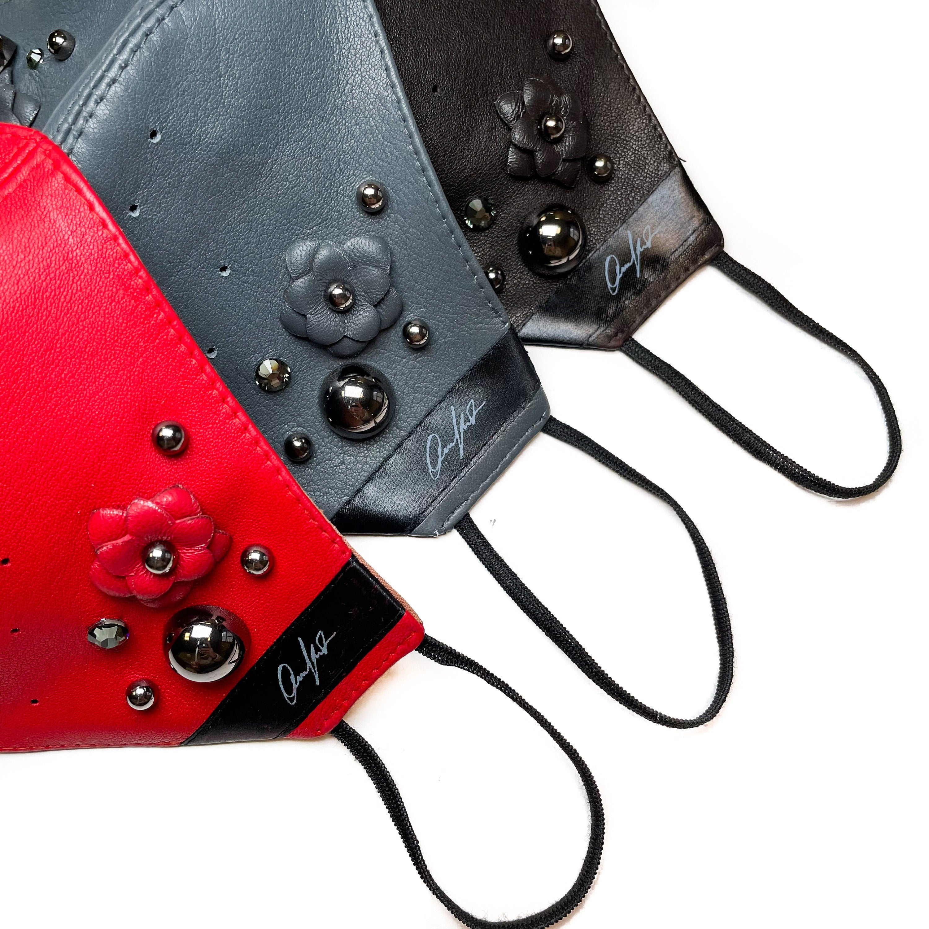 Limited Edition! Reusable Leather Face masks with Handmade Italian Leather Flowers and SWAROVSKI crystals