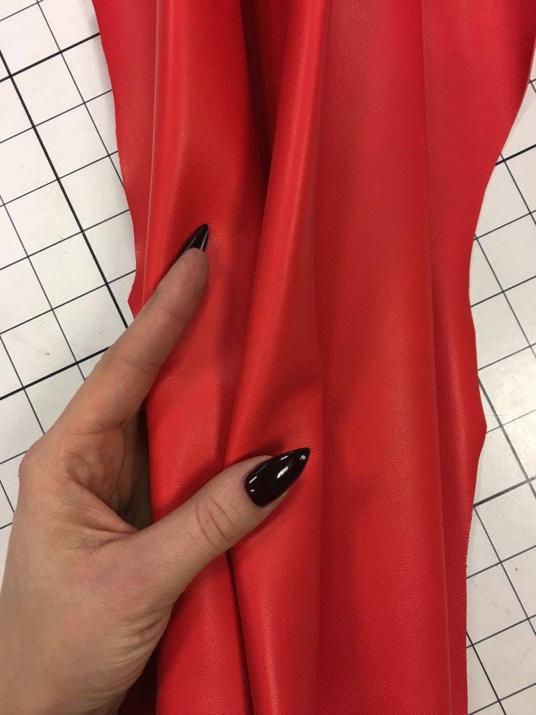 -Bright red leather material, genuine sheep skin sheets for sewing and handcrafting, jewelry making, accessories and all kind of DIY projects - perfect for sewing leather bags & clothing - skirts, jackets, tops etc. Skin is soft and smooth. Thick enough to hold the products shape, but also durable if leather needs to be folded. Try it!