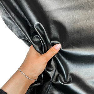 High-quality shiny black lambskin leather fabric in black color. Black leather leather for your best projects! Our mission is to provide only the best quality Italian leather to other leather workers, crafters of all kinds, small businesses or Etsy shop for your own projects.