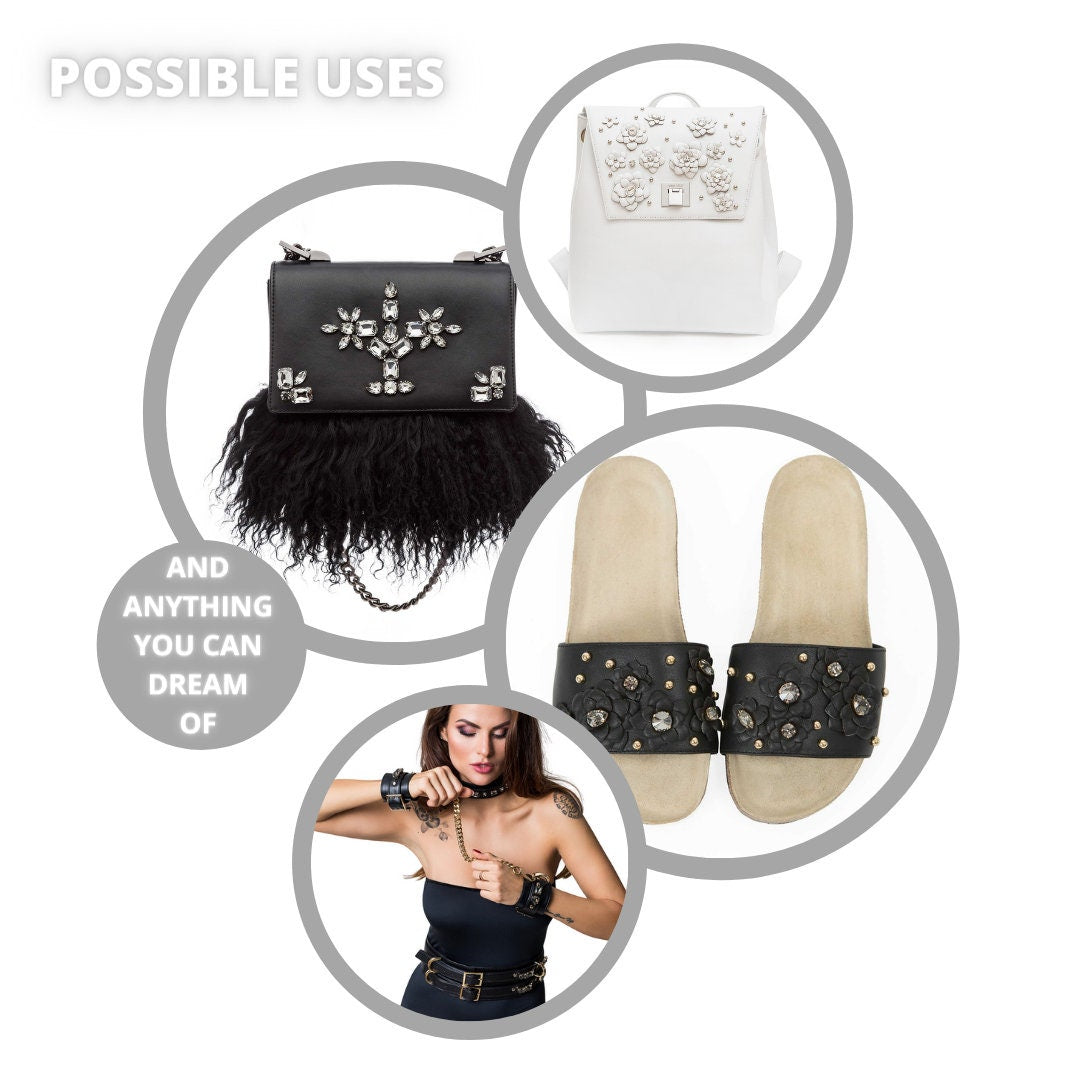Swarovski Crystals for Leather / Silver or Gold / Easy Install