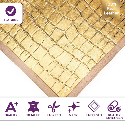 Gold Crocodile Print Calfskin Sheets 0.9mm/2.25oz / GOLD CROCODILE 1026