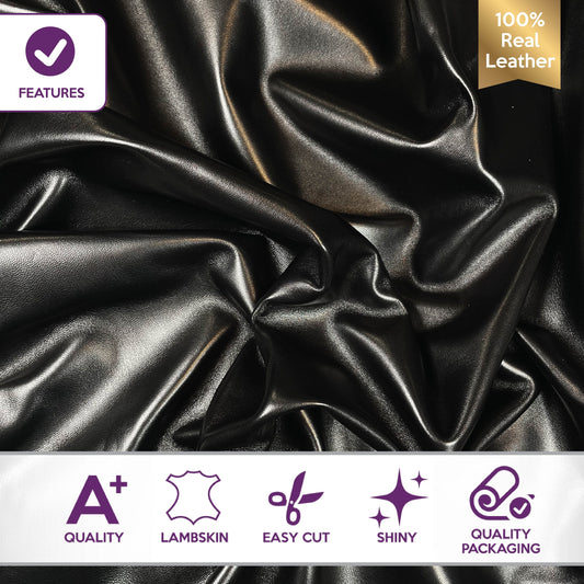 Black Lambskin Leather 0.7mm/1.75oz / PIRATE BLACK 1300