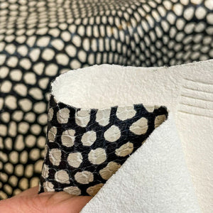 High-quality lambskin leather fabric hides with black & white snake print. Unique snake print leather for your best projects! Our mission is to provide only the best quality Italian leather to...