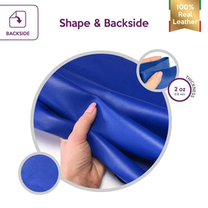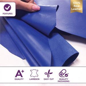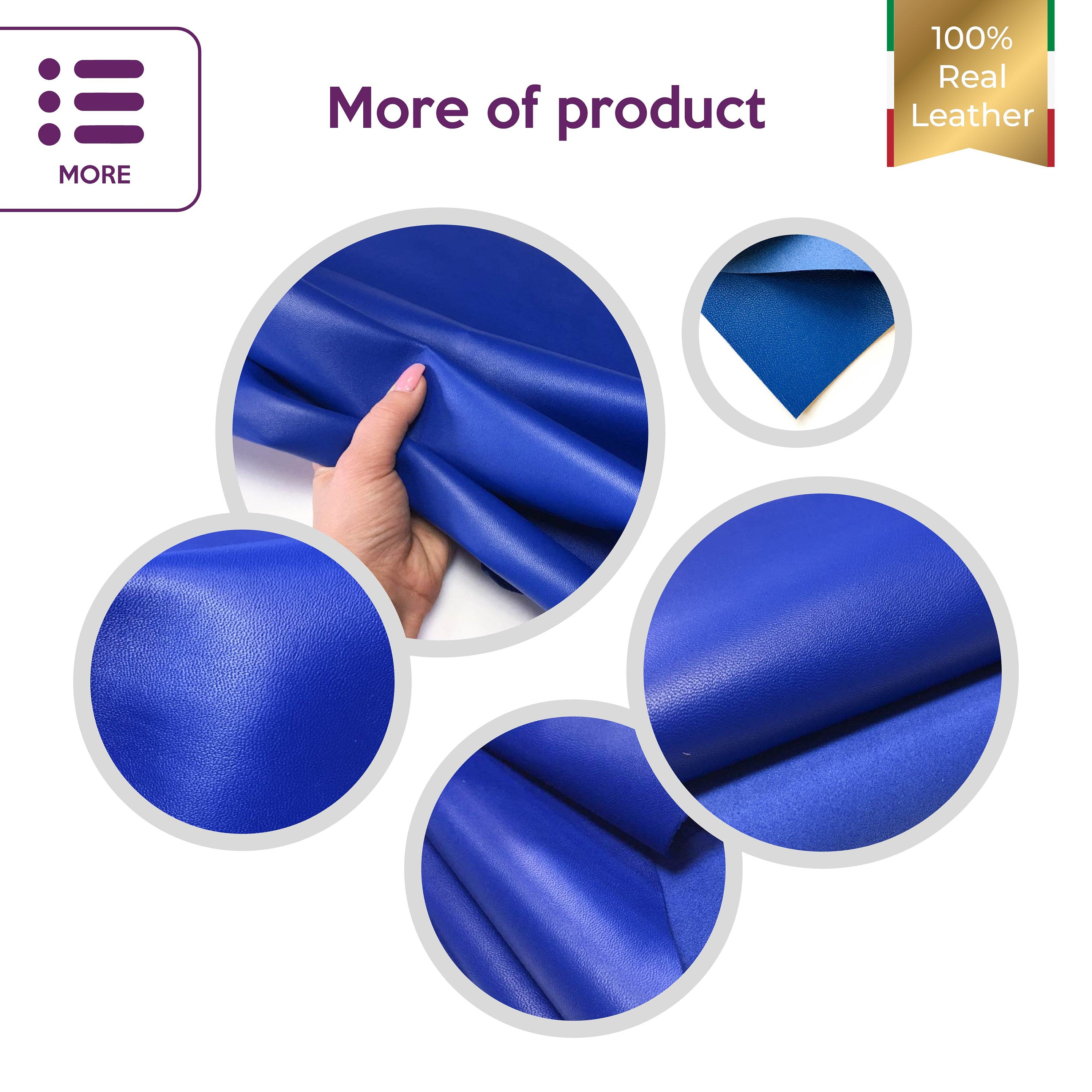 -INK Blue leather sheets. Genuine sheep skin sheets for sewing and handcrafting. Bright Blue leather fabric. Pleasant for touch, will hold the shape of Your product, but it's not stiff. Colored through-out. Try it!